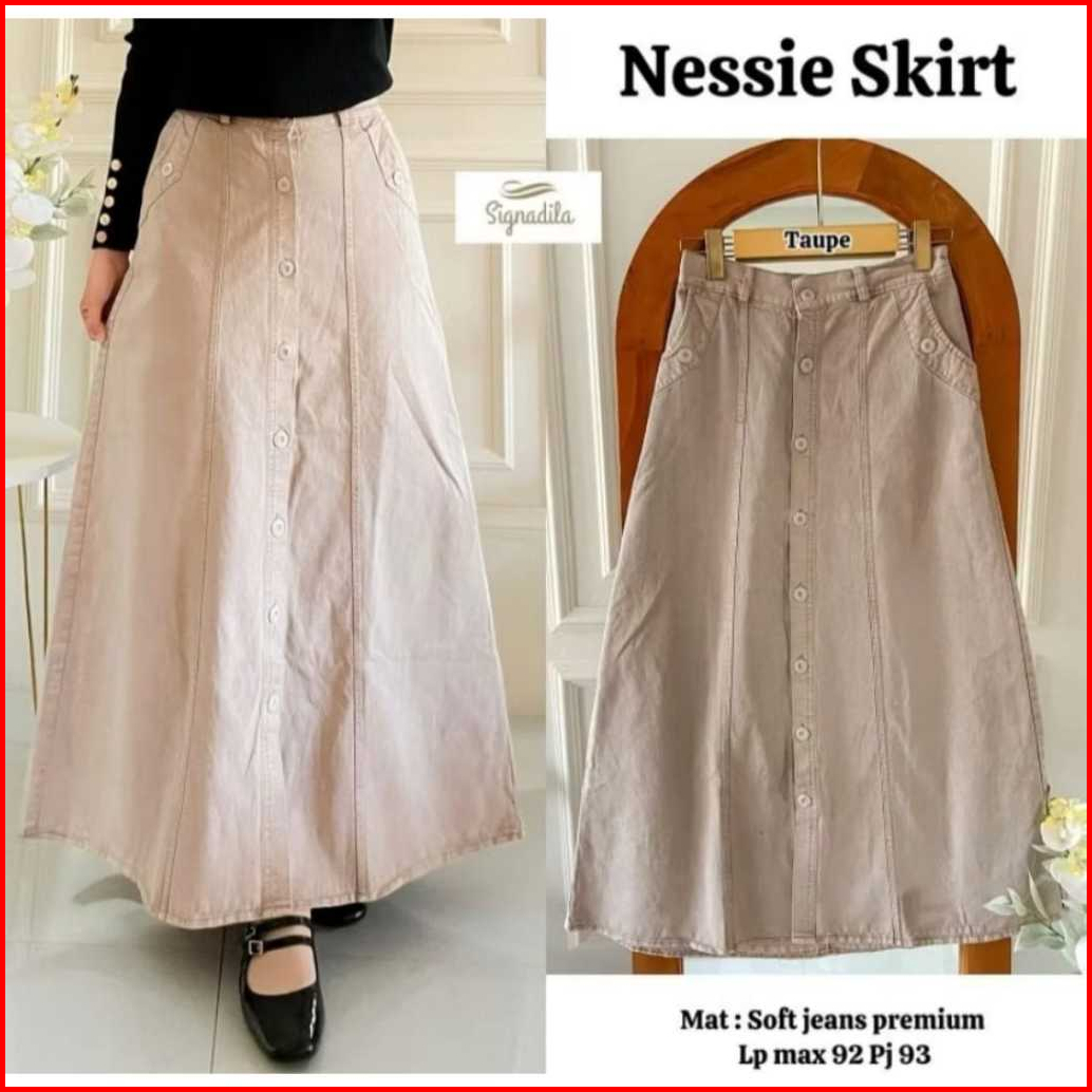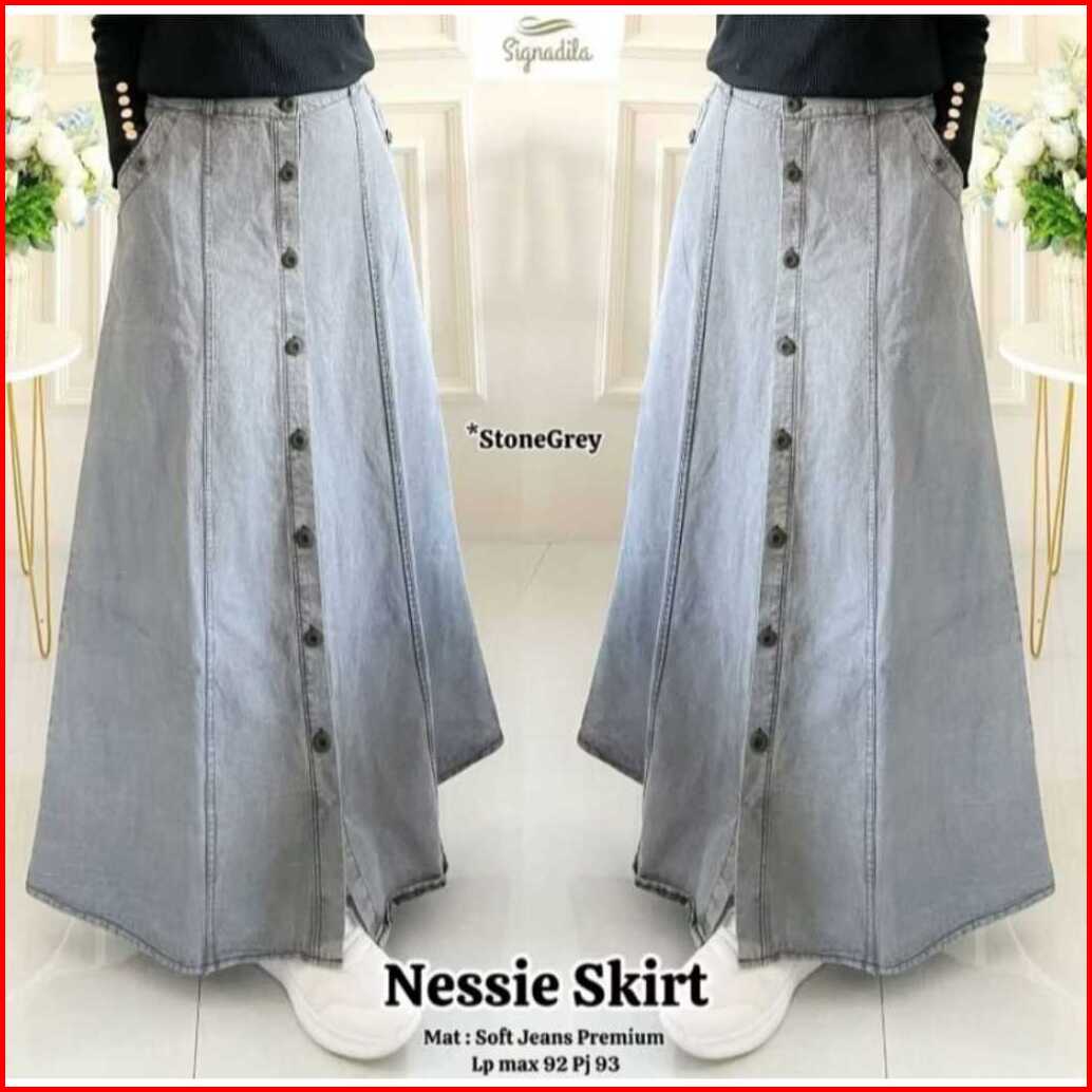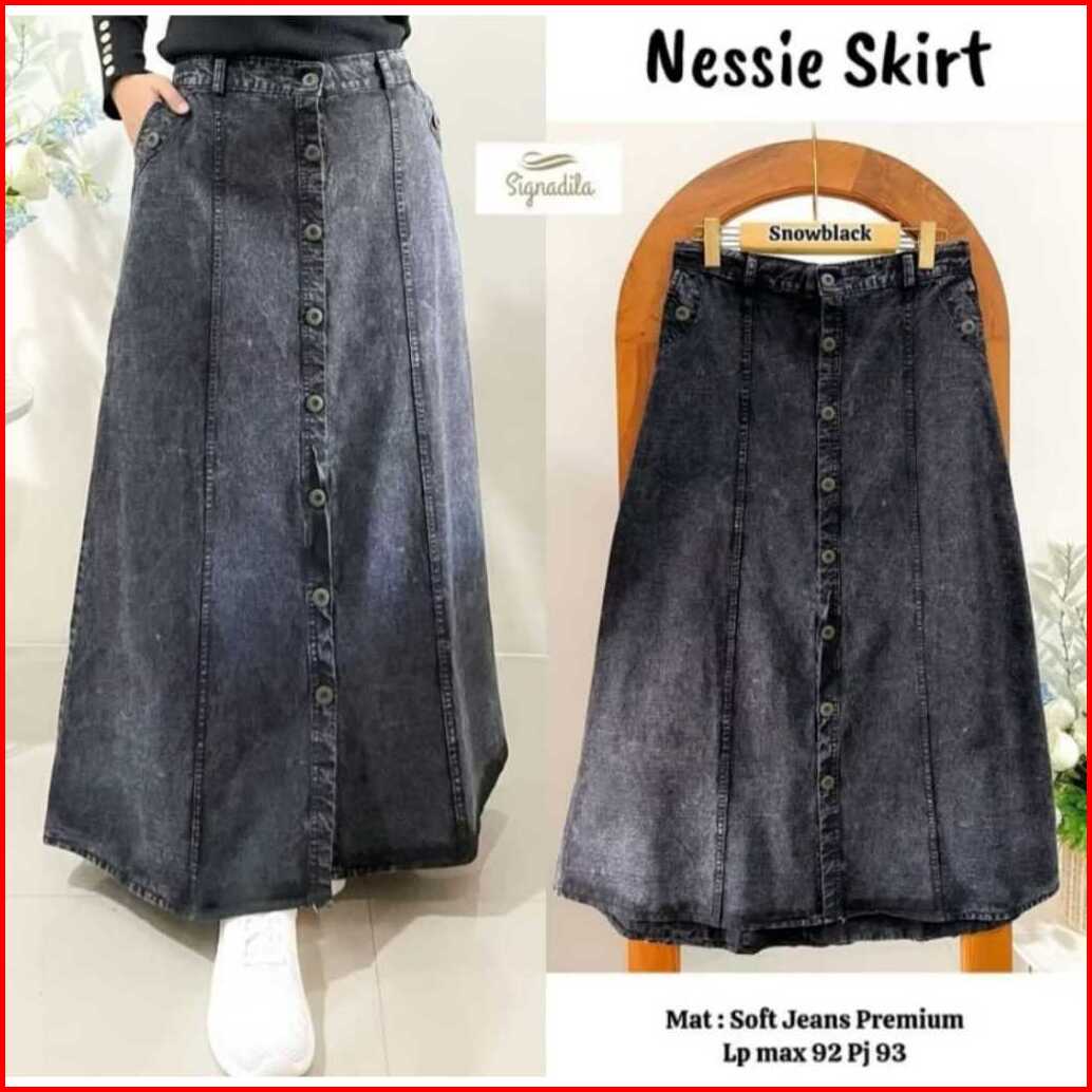 Nessie Skirt Rok Panjang Jeans Denim Wanita Semi A-line