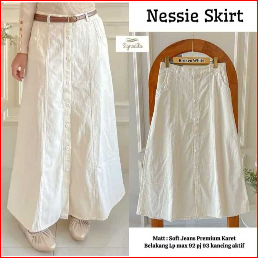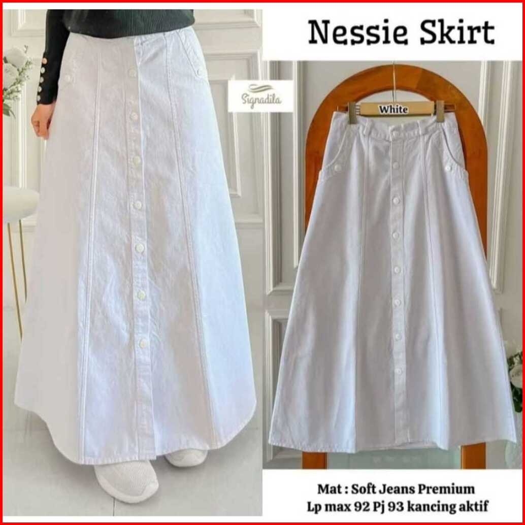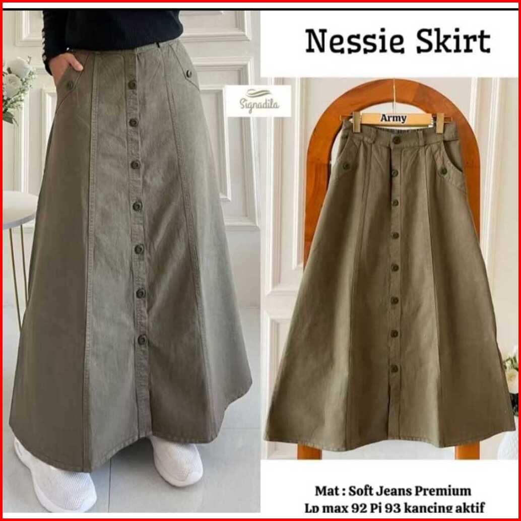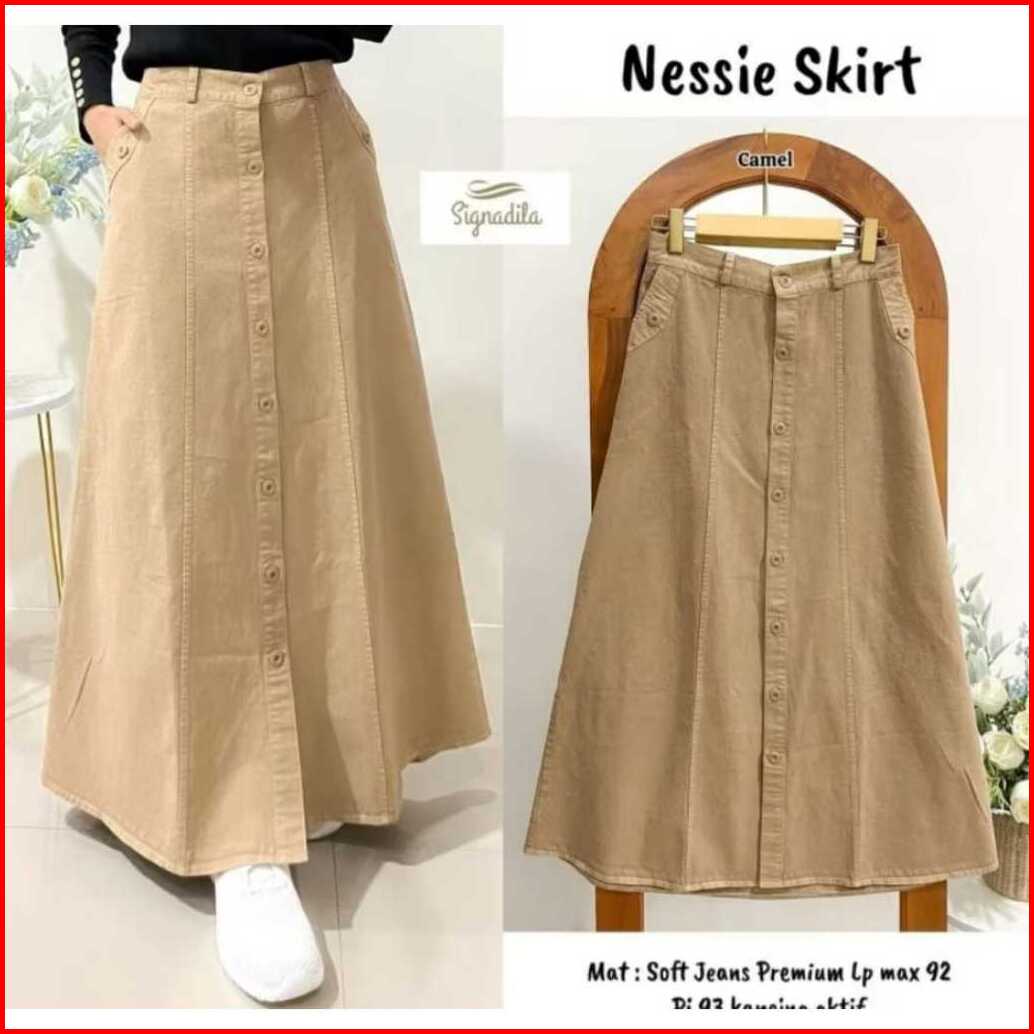 Nessie Skirt Rok Panjang Jeans Denim Wanita Semi A-line