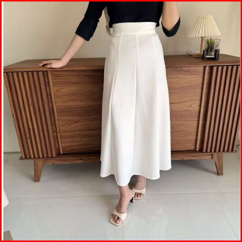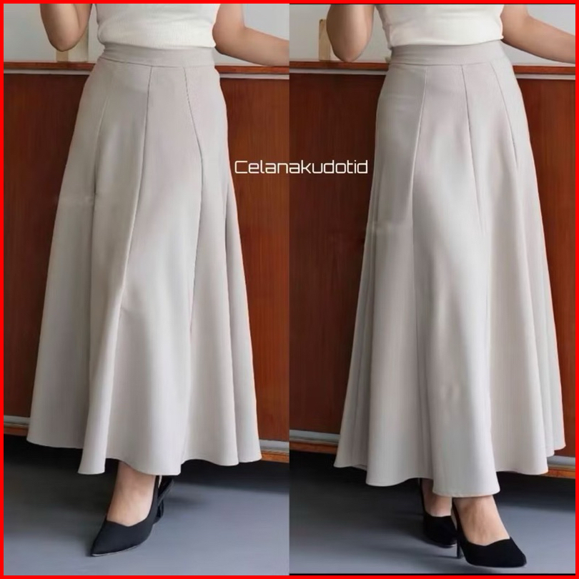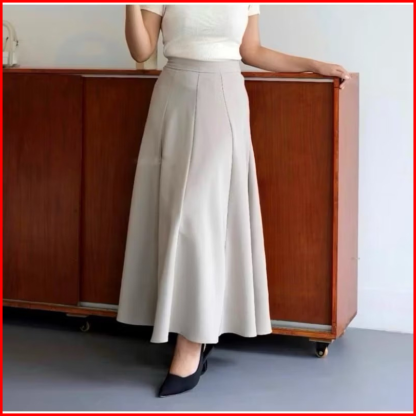 Haruka Skirt - Korean Loose Maxi Skirt Rok Wanita Anti Kusut Polyester - Rok Flare Wanita - Rok Basik Polos - Maxi Skirt