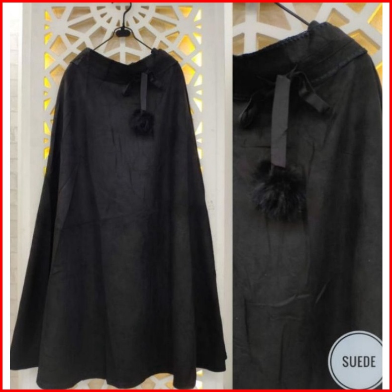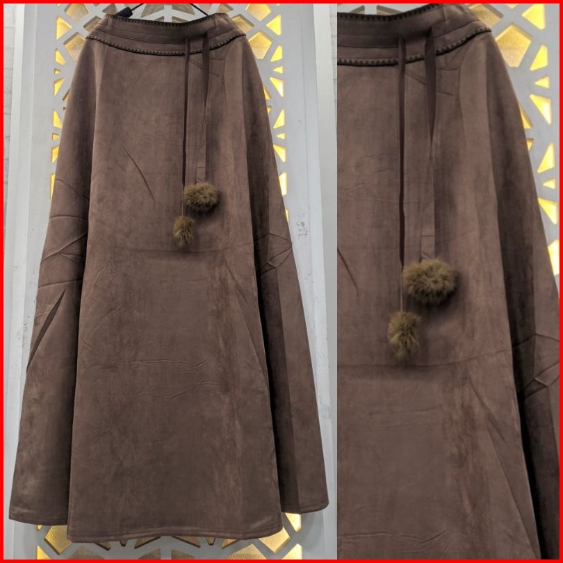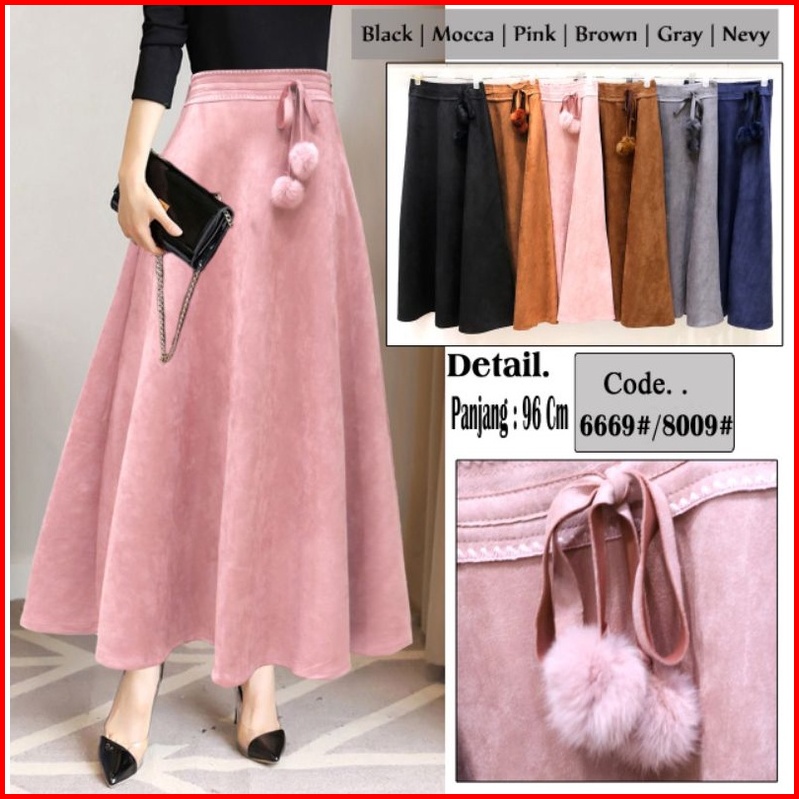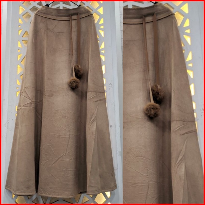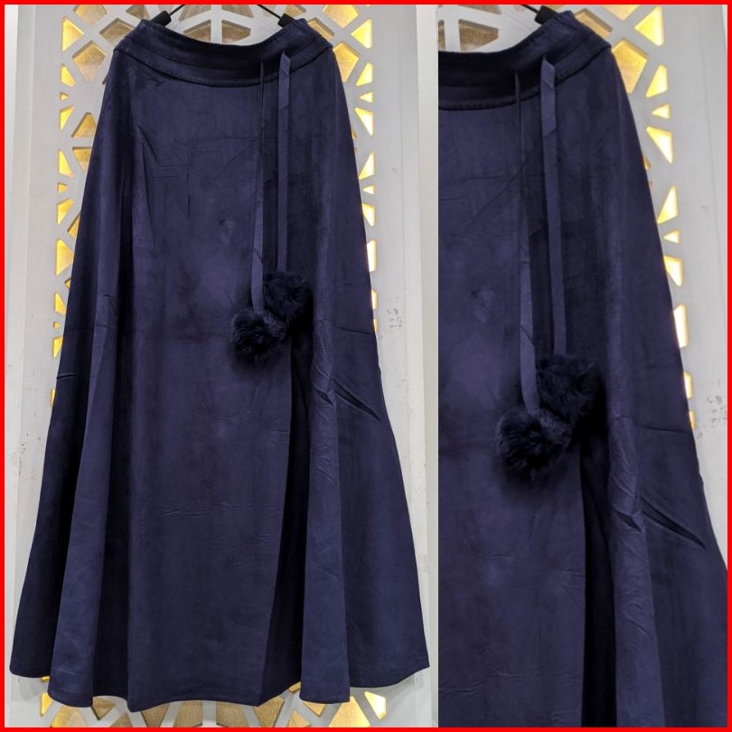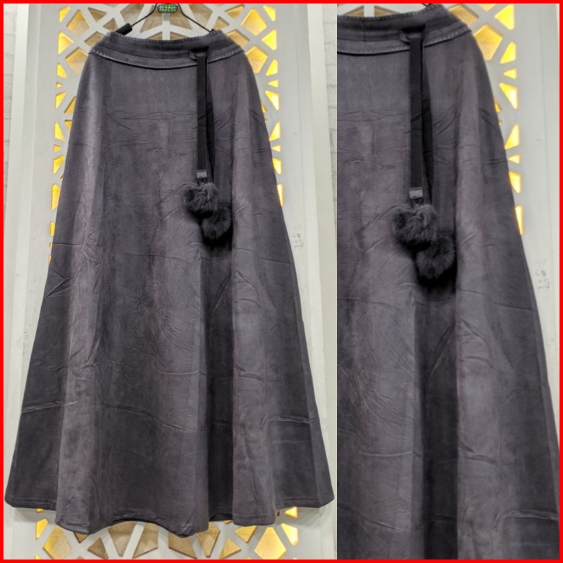 Rok Hitam Rok Suede Import Rok Suede Panjang Rok Suede Premium Rok Muslim Wanita Fashion Muslim Rok Suede Pom Pom Import