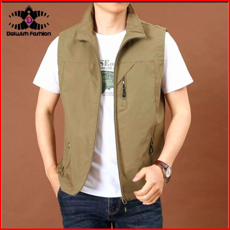 Delwish Fashion-rompi Pria Rompi Kantor Rompi Outdoor Rompi Keren Cotton Drill