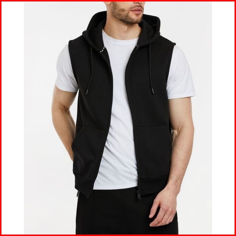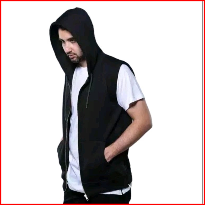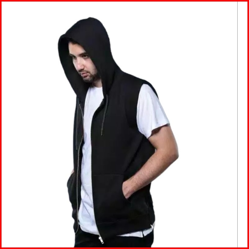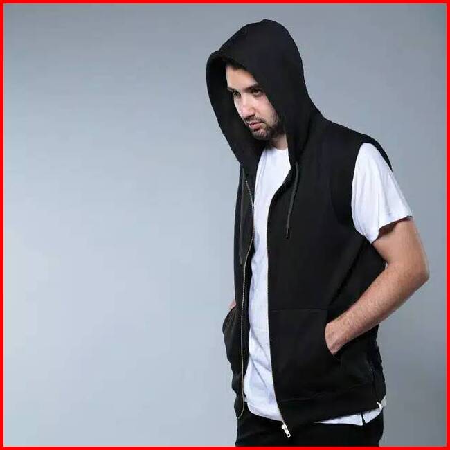 Jaket Pria Hoodie Vest Zipper Bahan Cotton Fleece