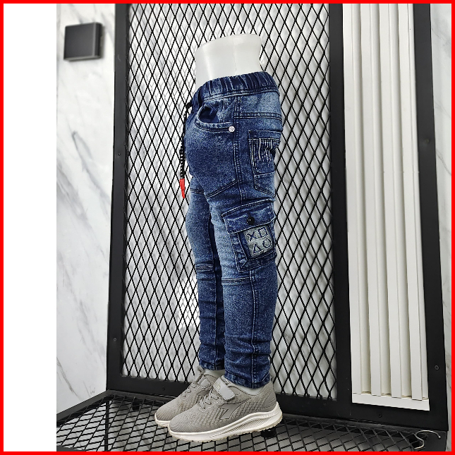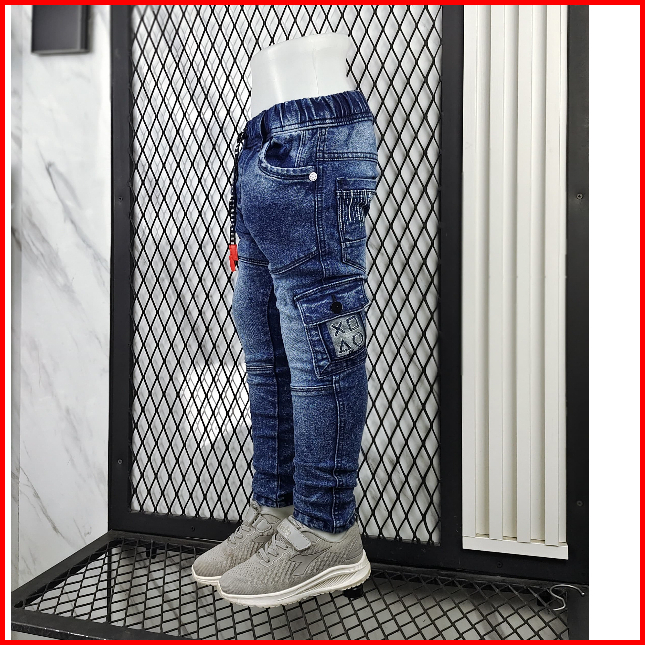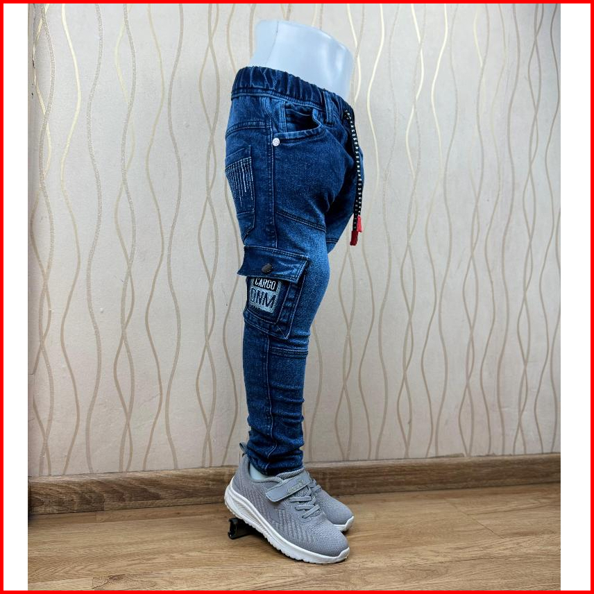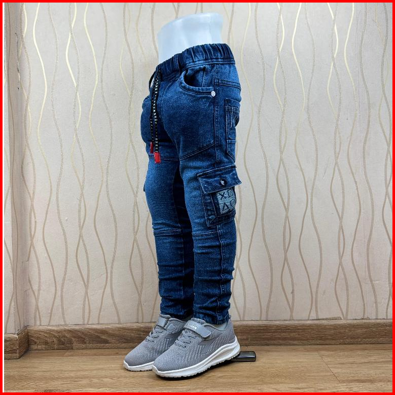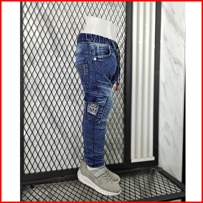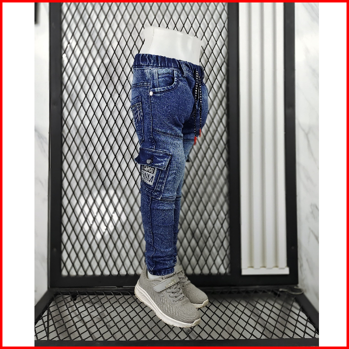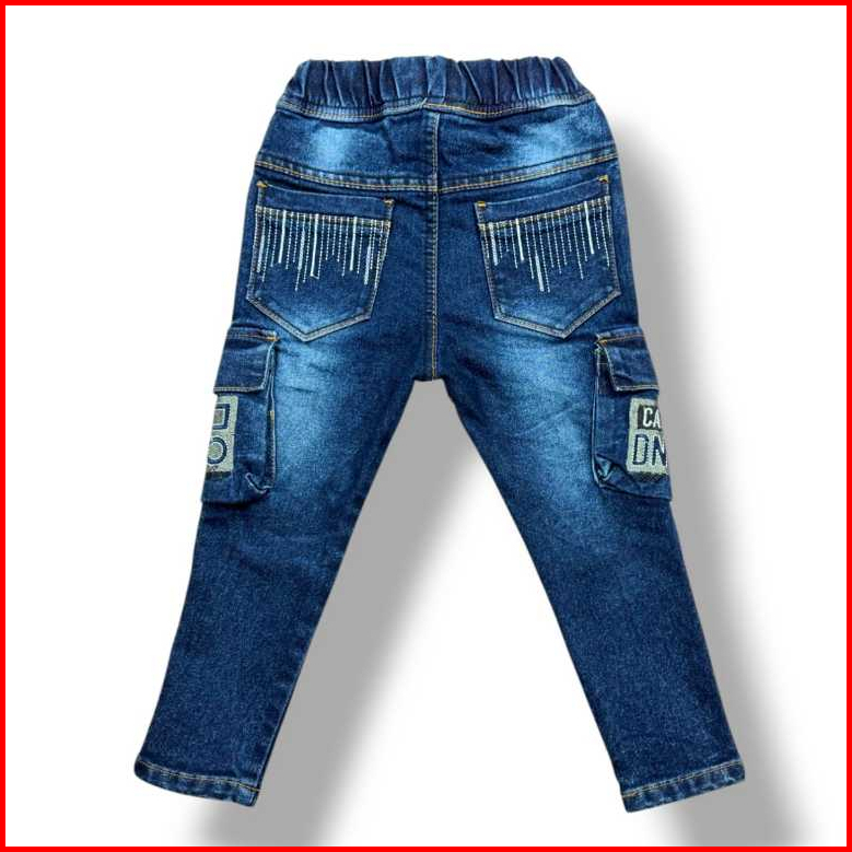Celana Panjang Jeans Stretch Anak Laki-laki Usia 4 - 12 Tahun Bahan Jeans Stretch Denim Motif Bordir Keren Model Kargo C