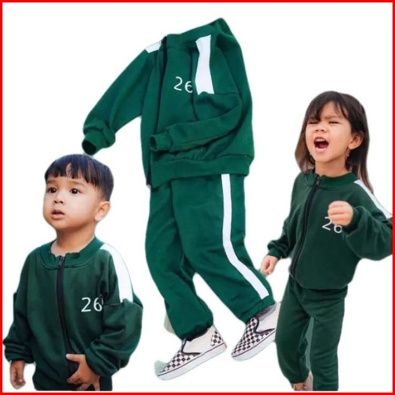 Setelan Baju Celana Squid Game Anak Laki Dan Perempuan Sesi 2 Ukuran 1-7 Tahun