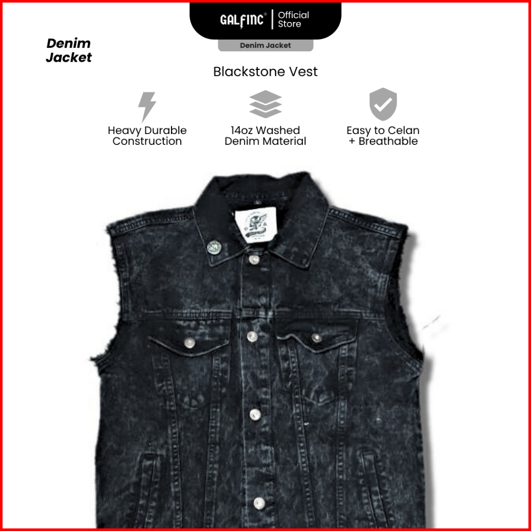 Galfinc Vest Rompi Blackstone 14oz Unisex Pria Wanita