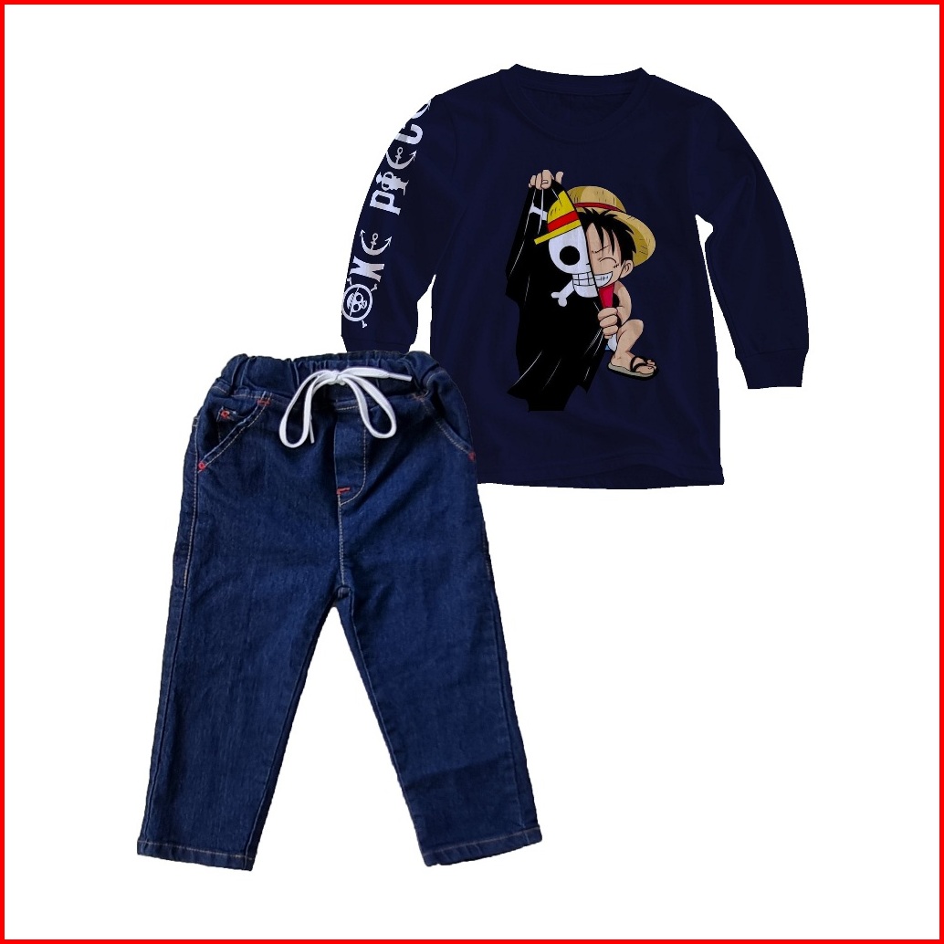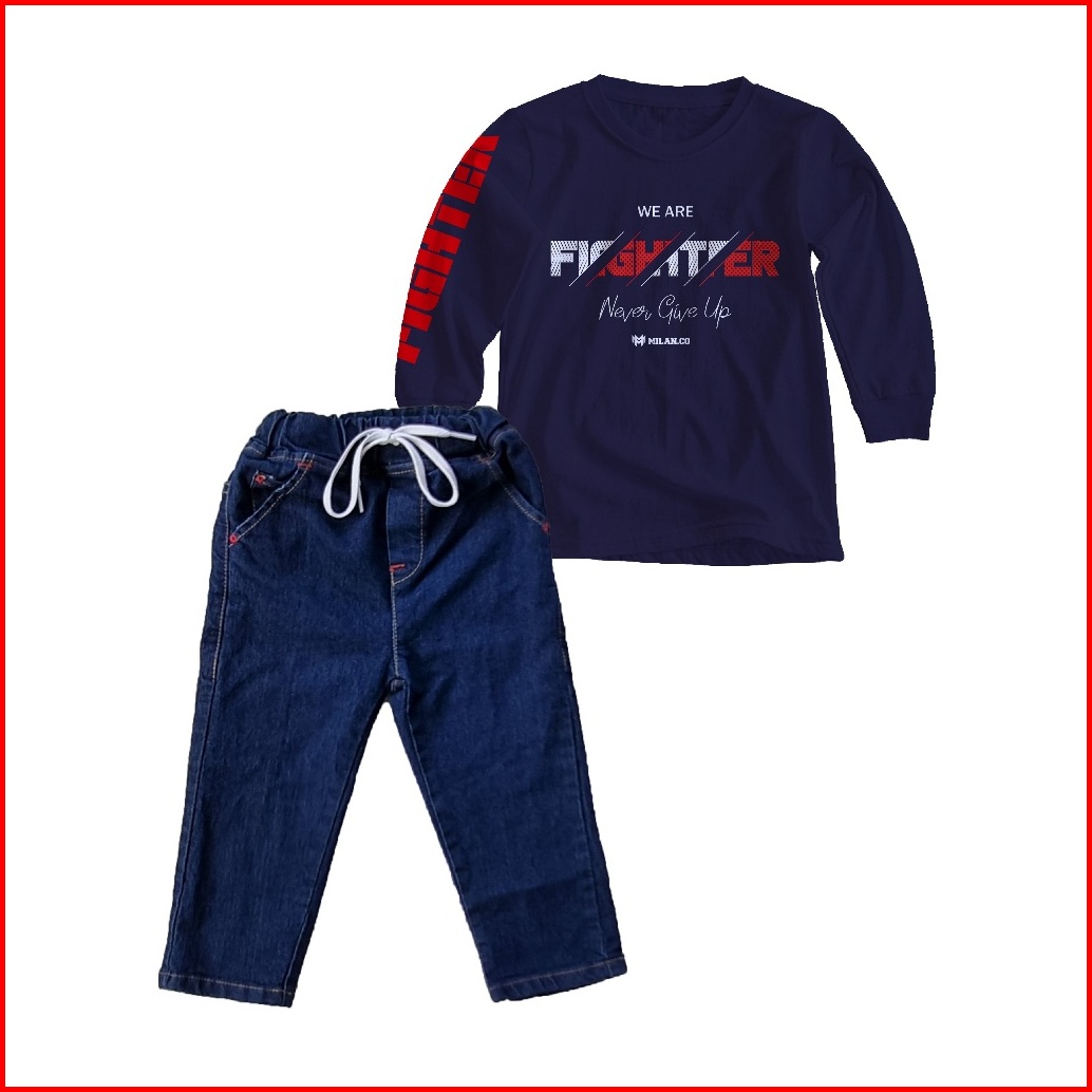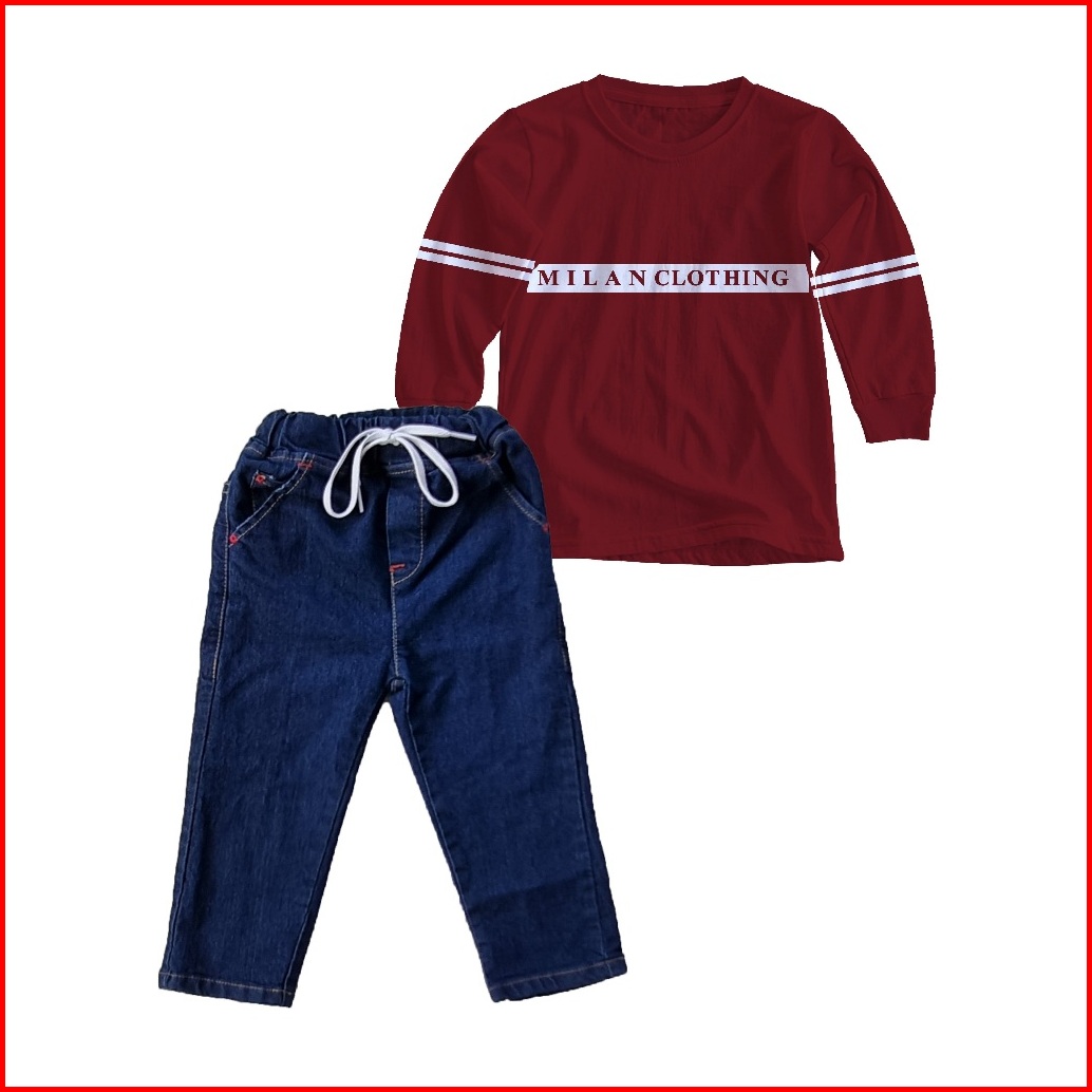 Milan.co - Setelan Anak Terbaru Umur 1-14 Tahun Satu Set Tangan Panjang Celana Denim