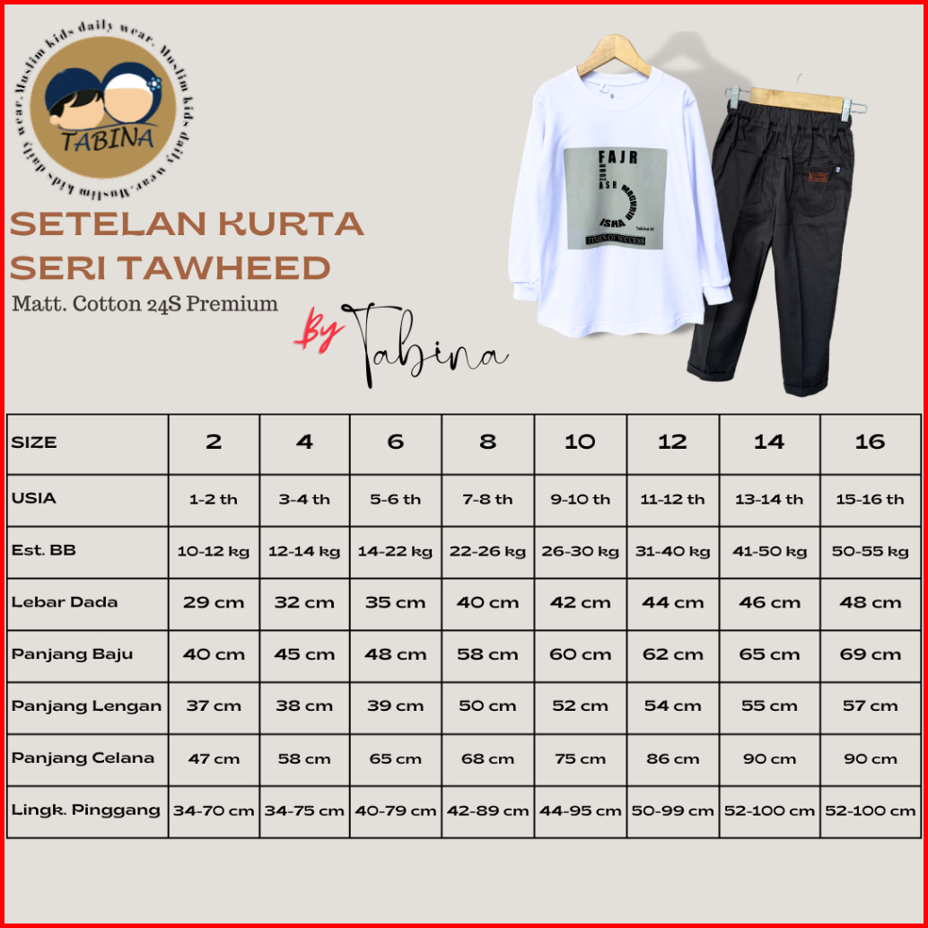 Setelan Anak Laki Laki Sampai Remaja Seri Tawheed Twill Usia 2 Hingga 17 Tahun