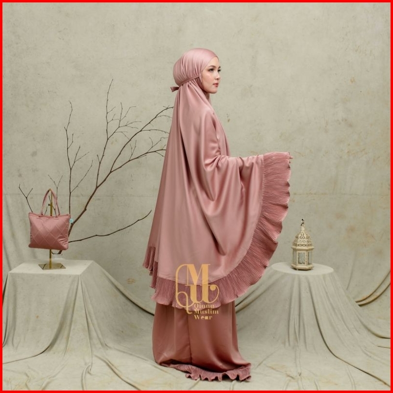 Qmw - Mukena Dewasa Jumbo Silk Premium 2in1 Series Aliyaa Rempel Plate Mewah Luxury Terbaru