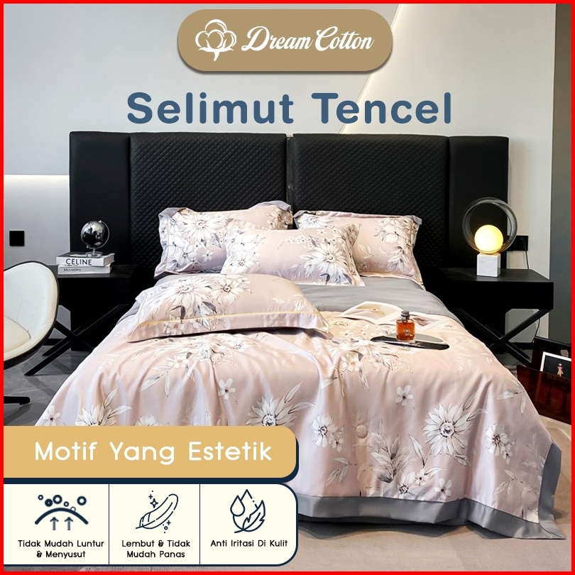 Dreamcotton Selimut Tencel Premium Jumbo Motif Bunga Estetik Selimut Dewasa Quilt Lembut Mewah 150x200cm 200x230cm