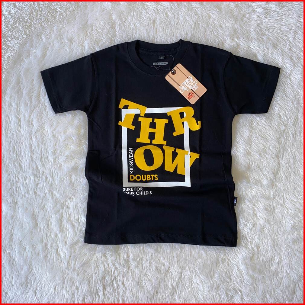 Setelan Anak Paket 3pcs Dua Kaos Dan Celana Jeans Pendek Usia 4-12 Tahun Danim Kiddoz-hitam Throw