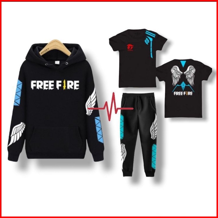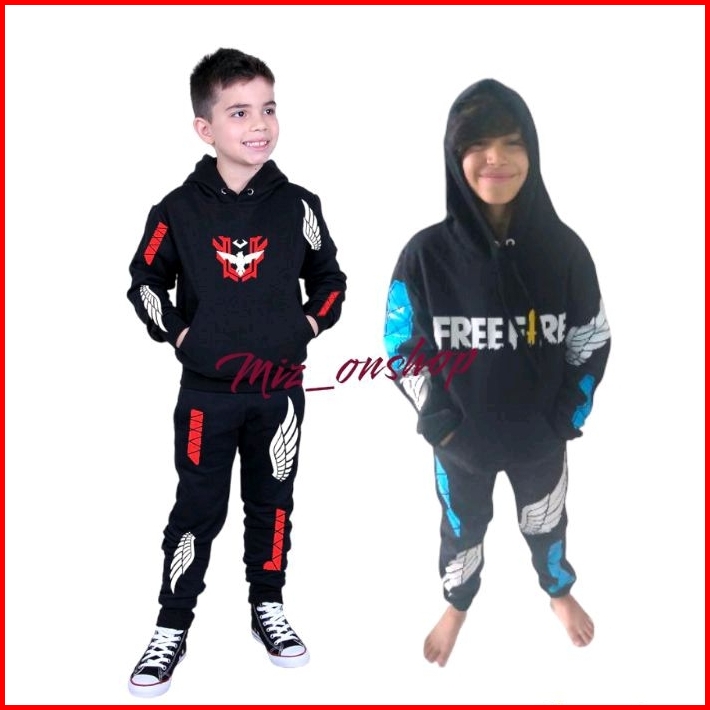 Setelan Jaket Free Fire.anak Laki-laki Baju Angel Freefire Celana Angel Ff Anak 4tahun - 16tahun