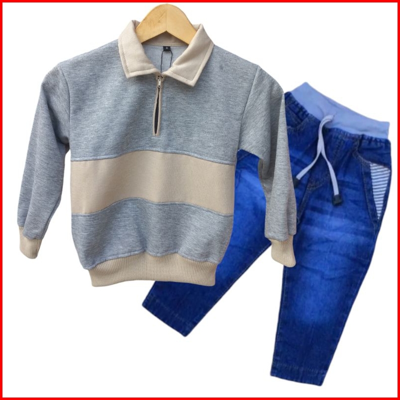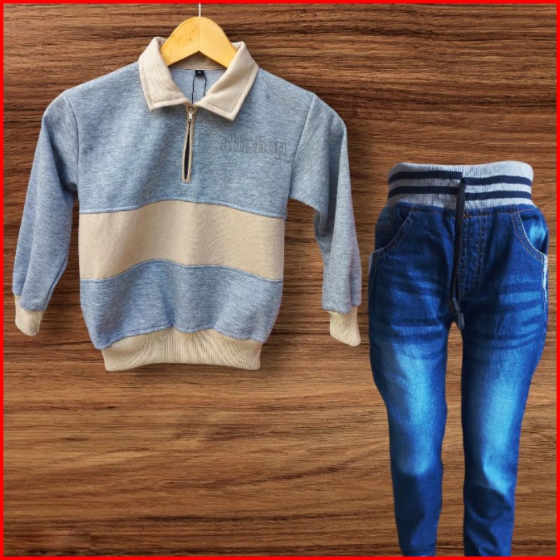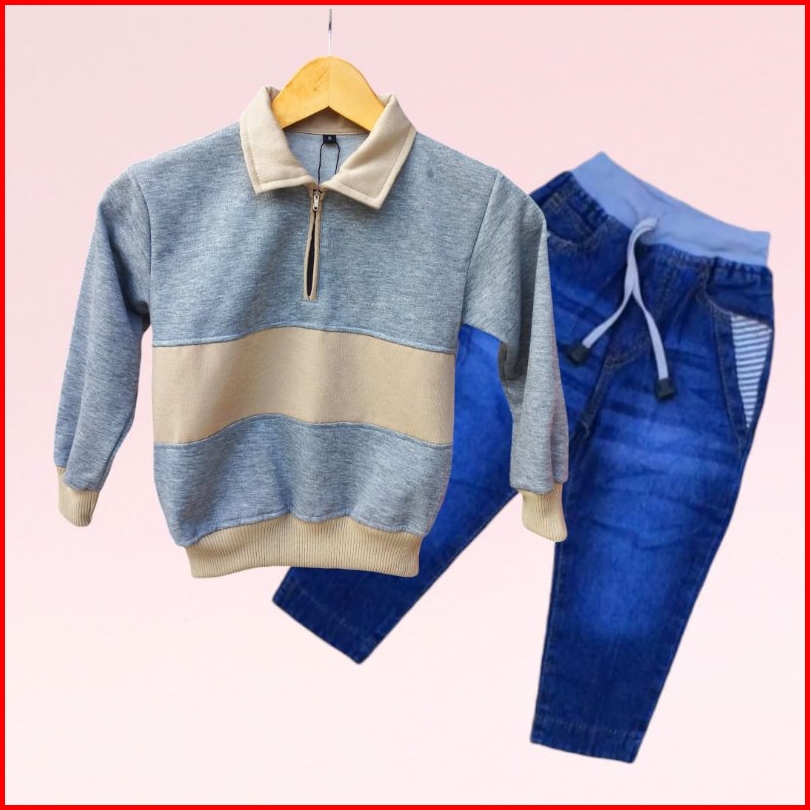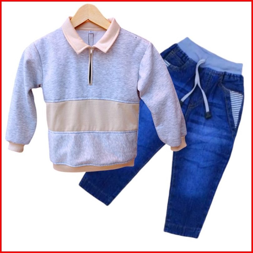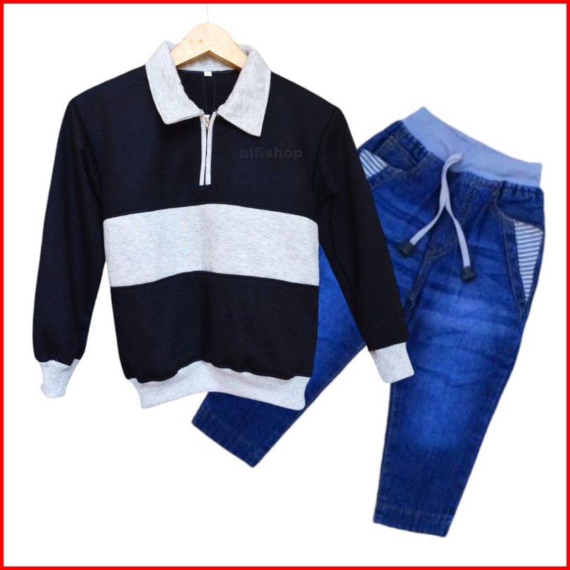 Alfishop Stelan Anak Laki Laki Satu Setel Switer Rugby Celana Jeans Giva Untuk Usia Anak 1-12thn