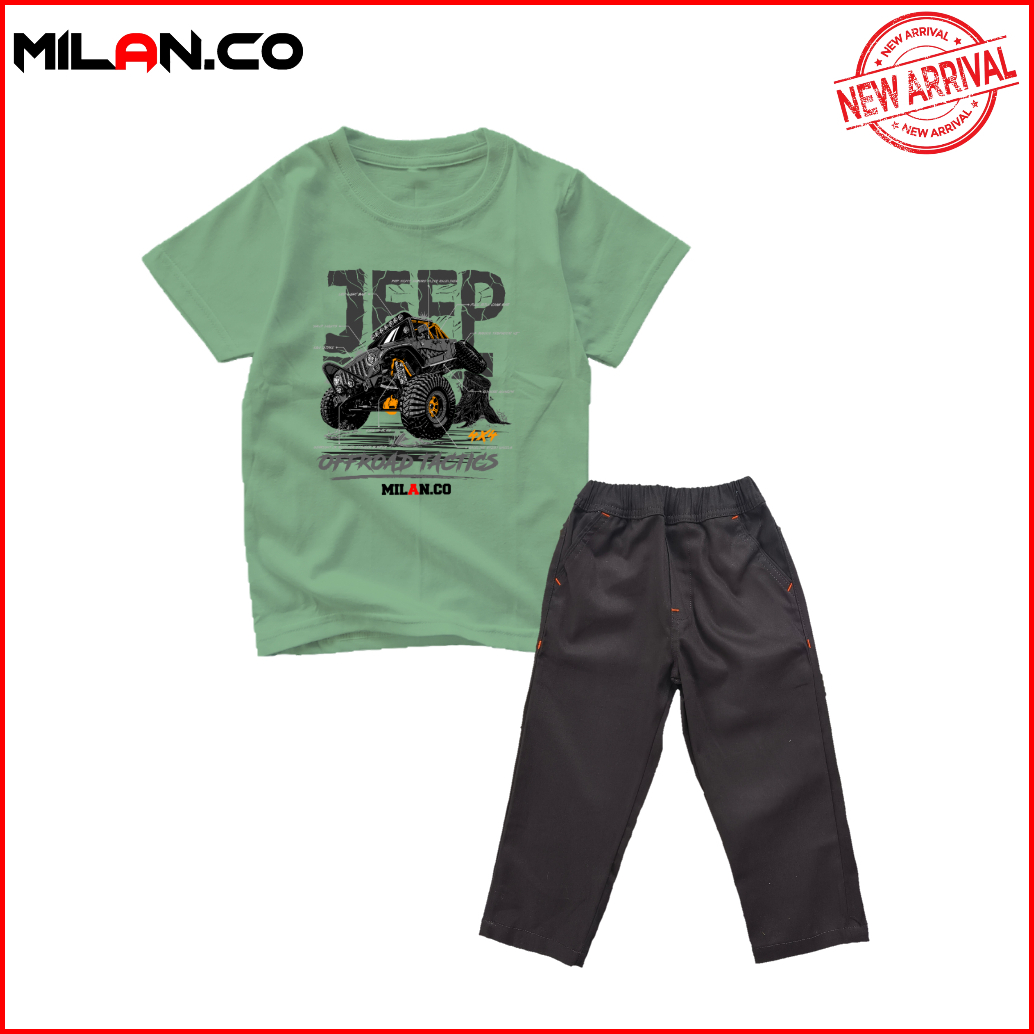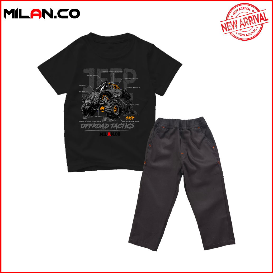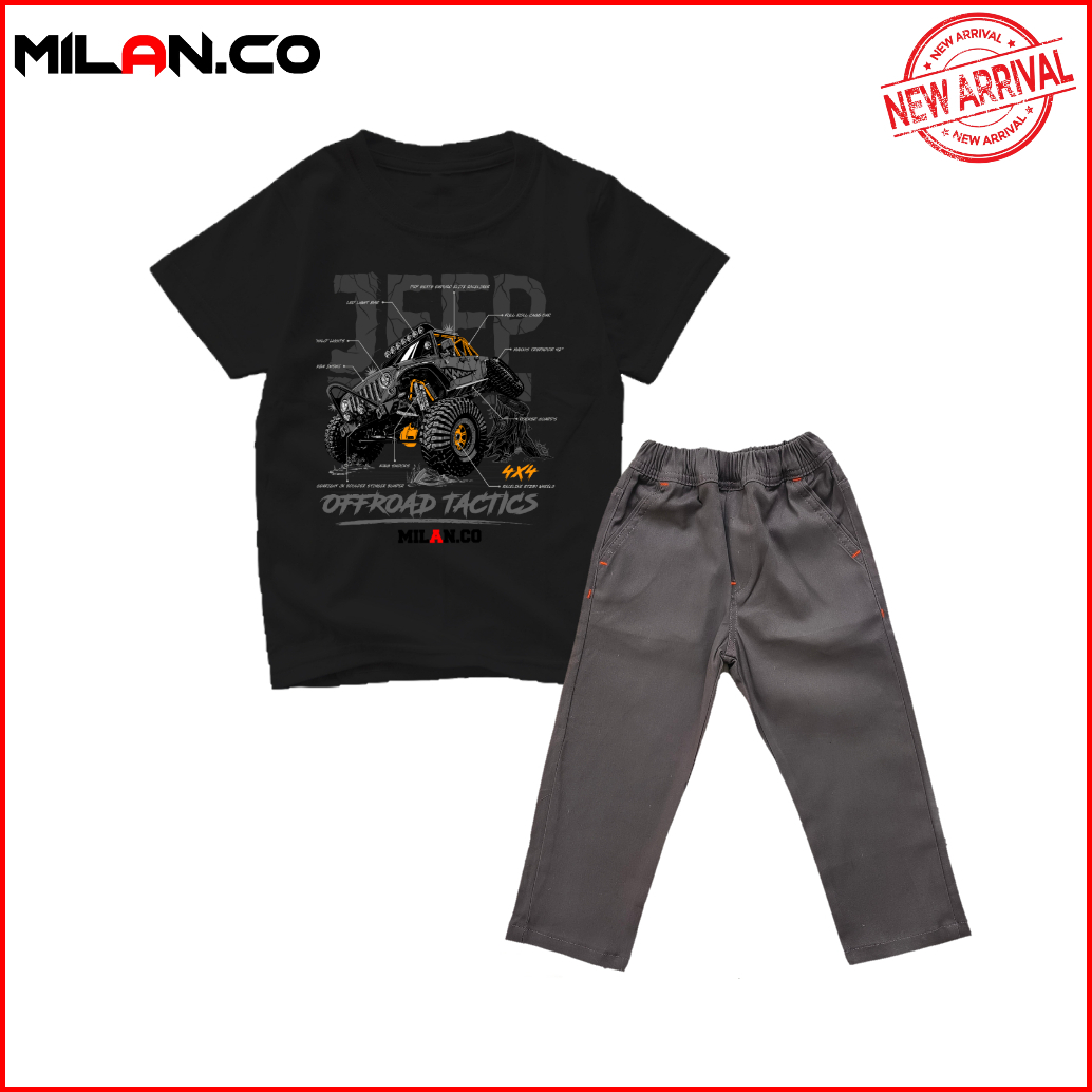 Milan.co Setelan Baju Kaos Anak Laki Laki Celana Panjangf Chino Motif Mobil Offroad Terlaris