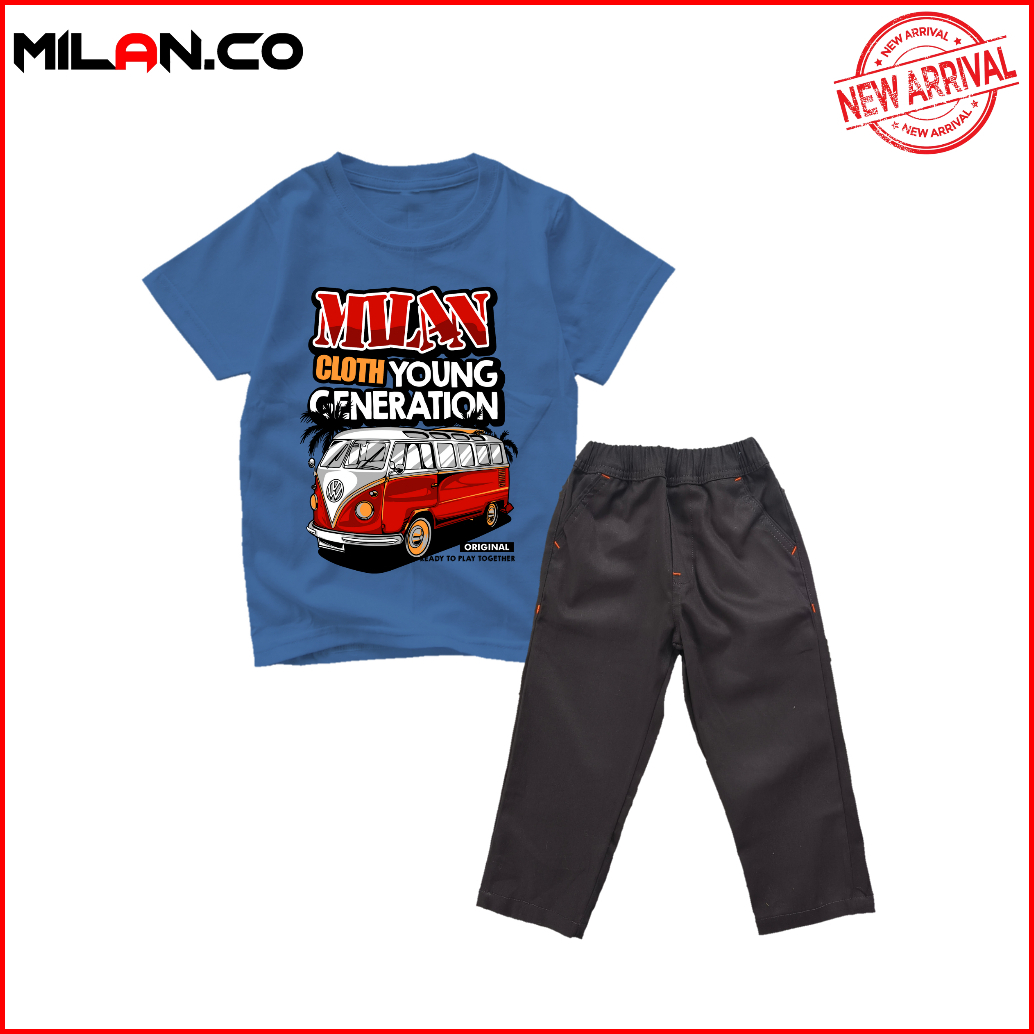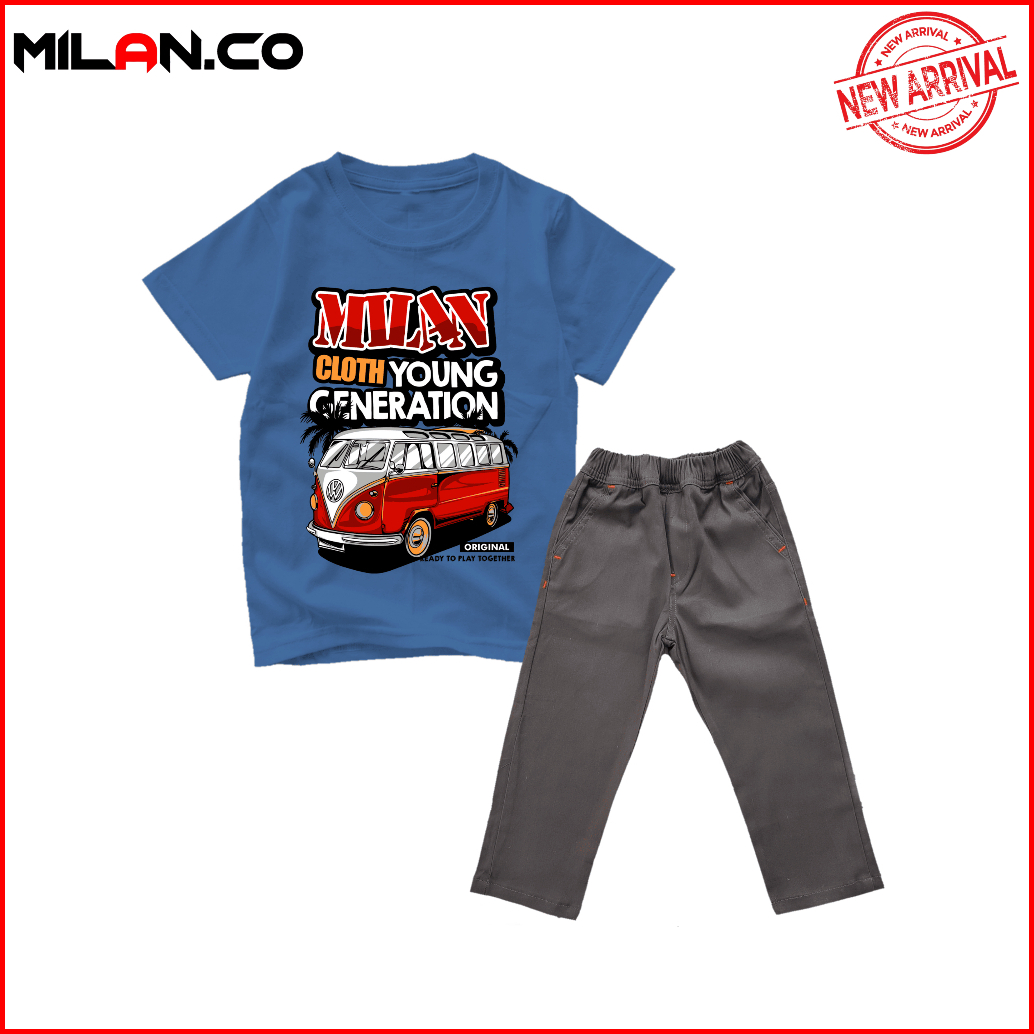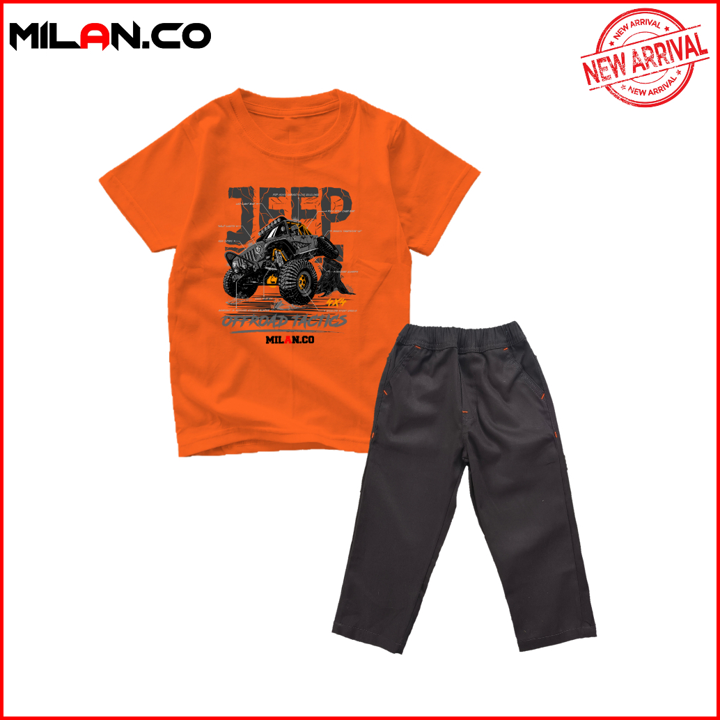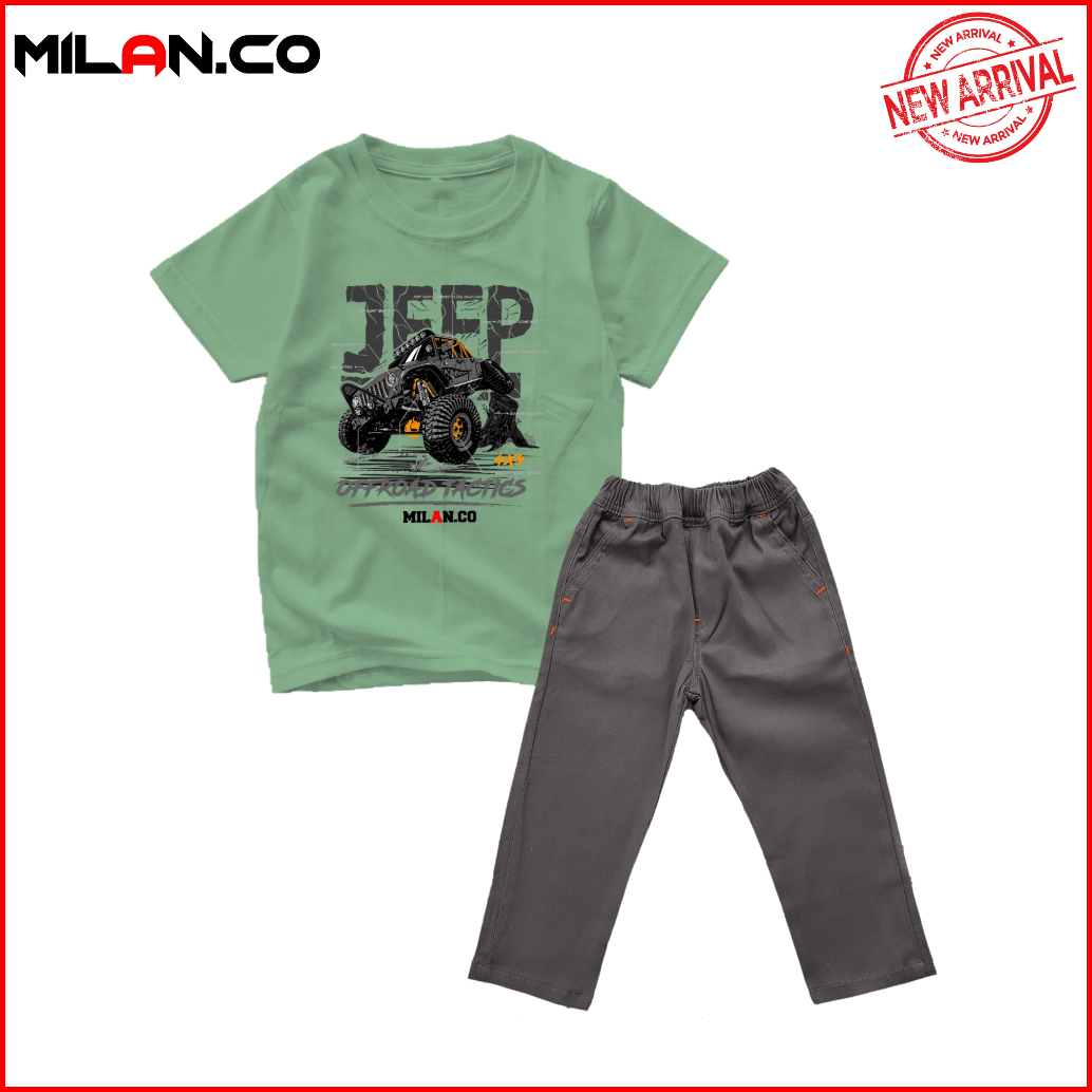 Milan.co Setelan Baju Kaos Anak Laki Laki Celana Panjangf Chino Motif Mobil Offroad Terlaris