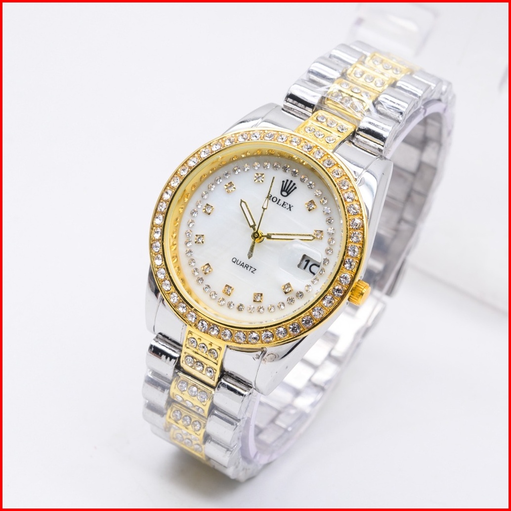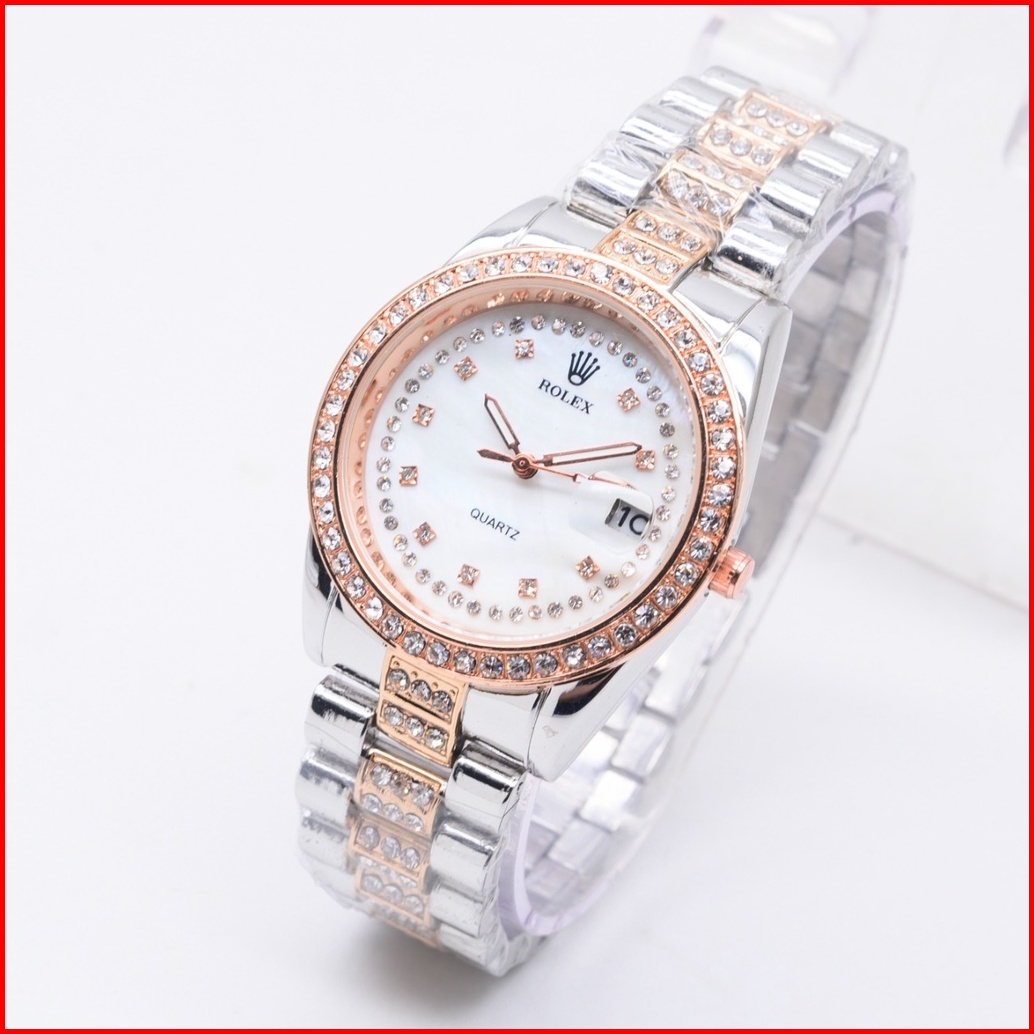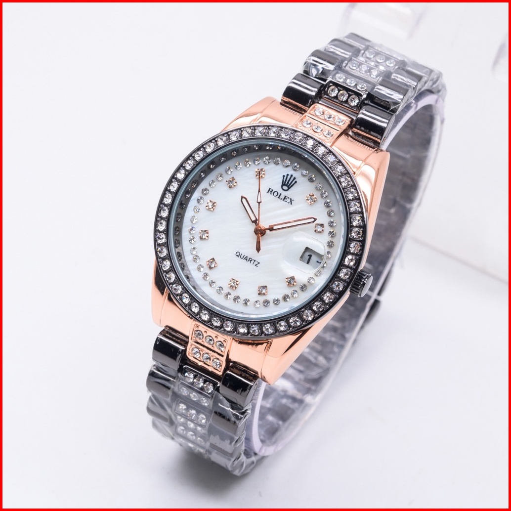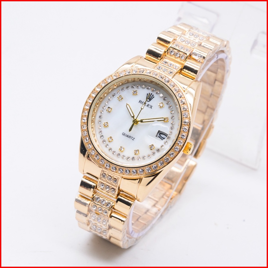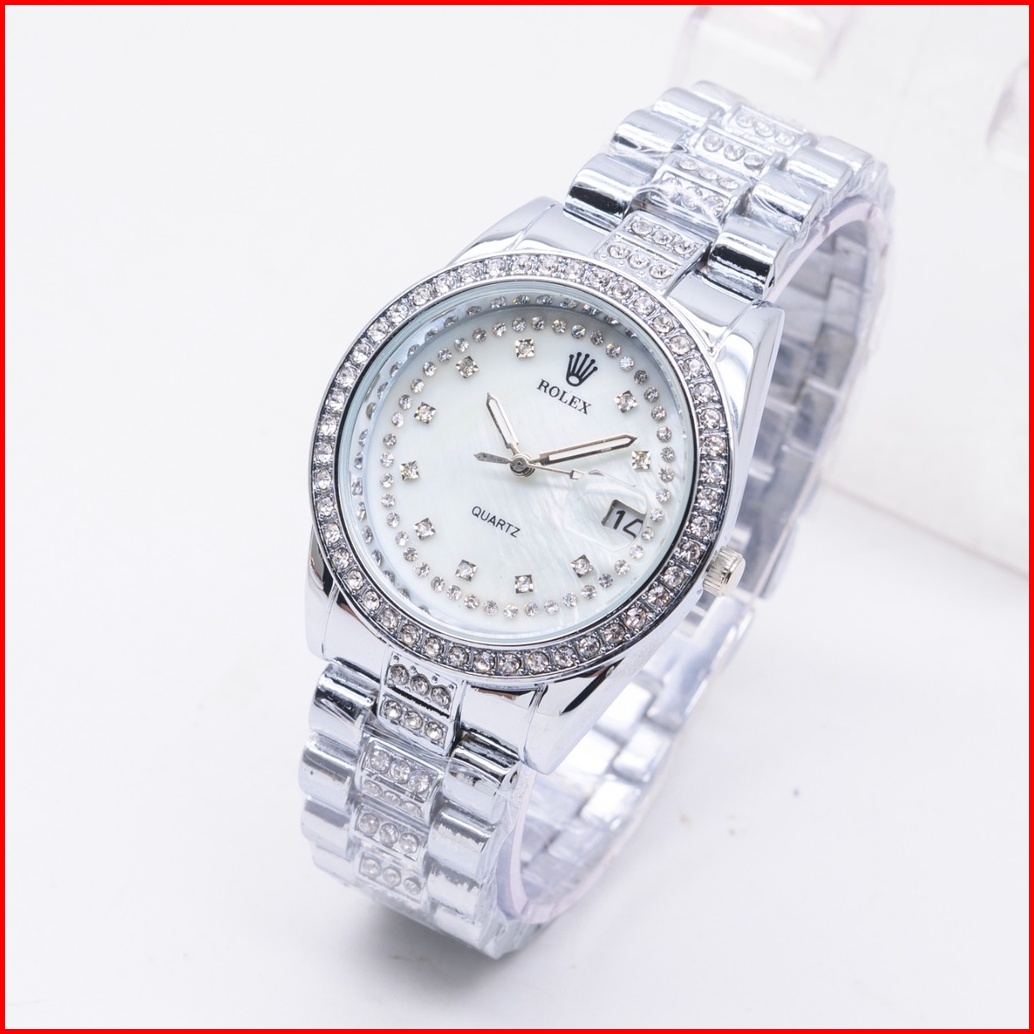 New Arrival Jam Tangan Mewah Wanita Fahsion Rolex Model Analog Body Full Diamond Rantai Stainless Tanggal On Plus Box 3