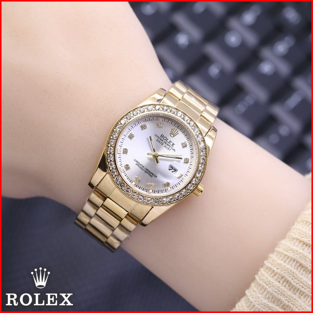 Jam Tangan Wanita Rolex Super Cantik Dan Simple Bermata Rantai Tanggal Aktif R228