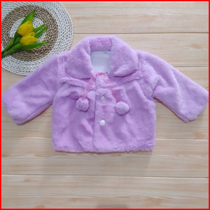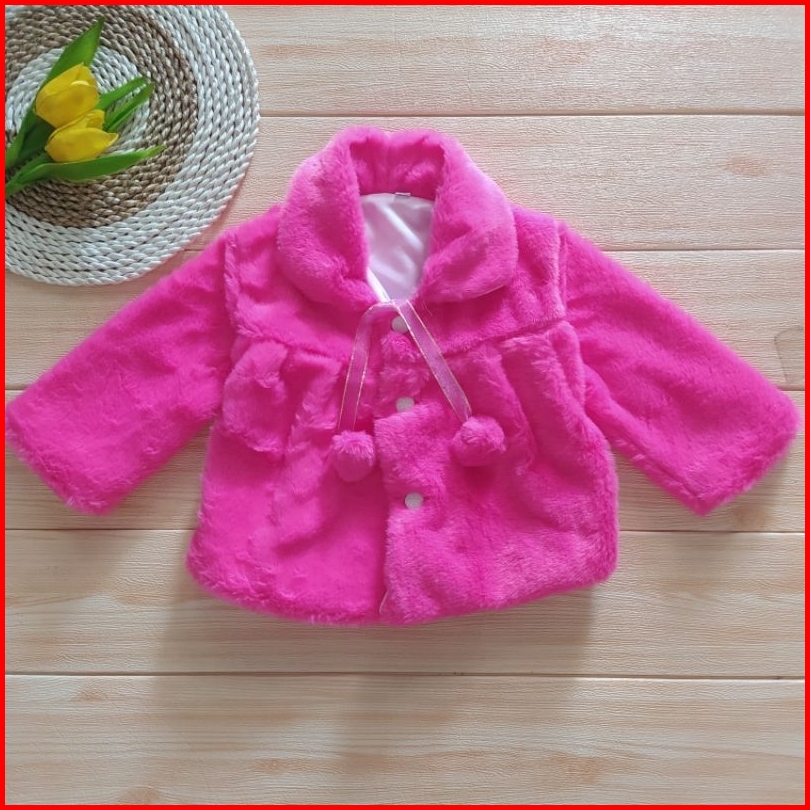 Jaket Bayi Perempuan Bulu Lembut 3-12 Bulan Bulu Tebal Lembut
