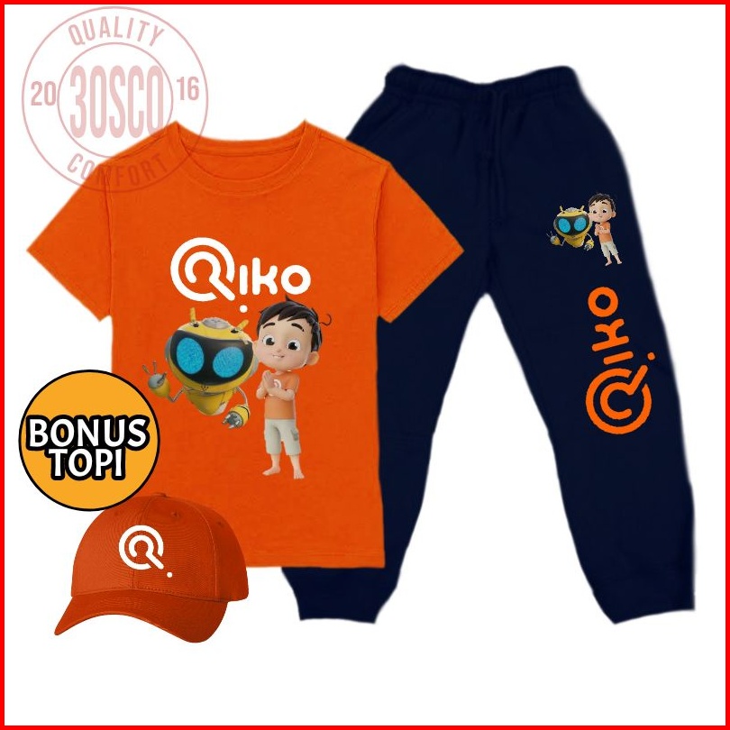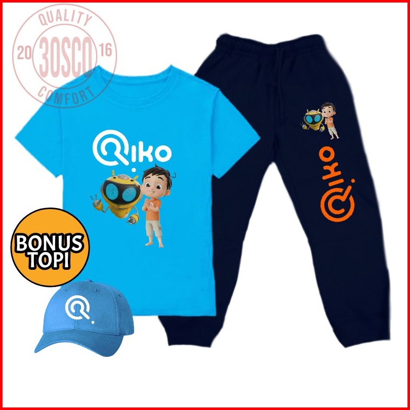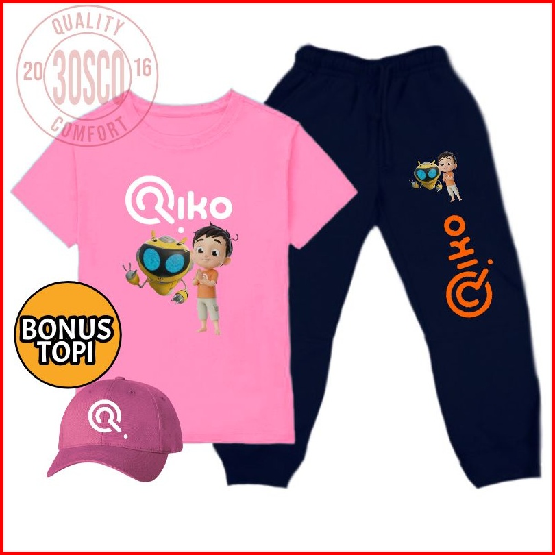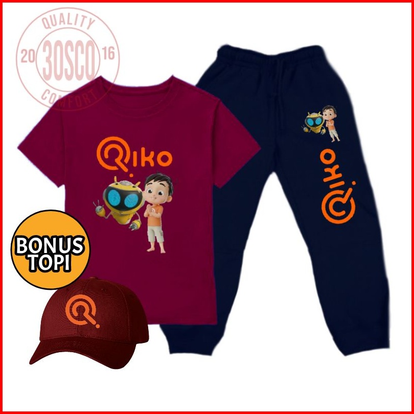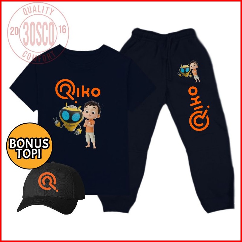 Setelan Kaos Anak Laki Perempuan Dan Celana Jogger Motif Riko The Series Bonus Topi Dan Bisa Kasih Nama