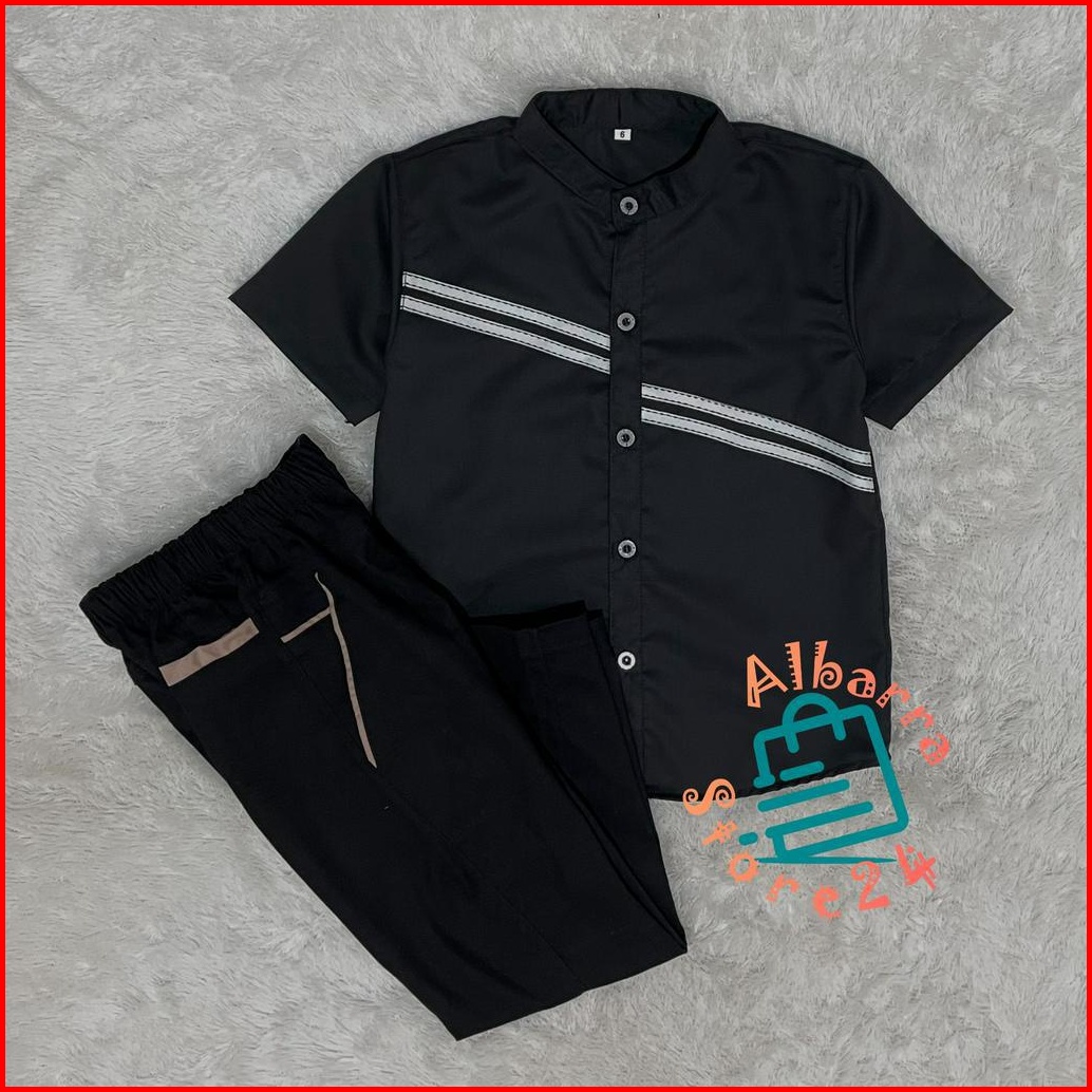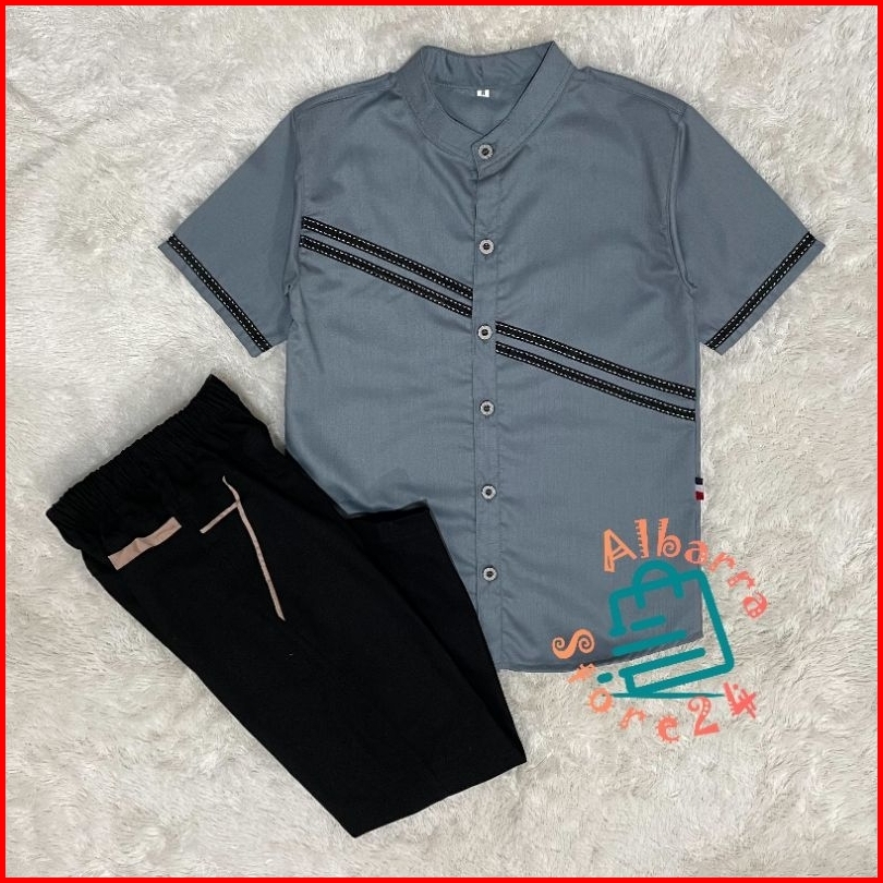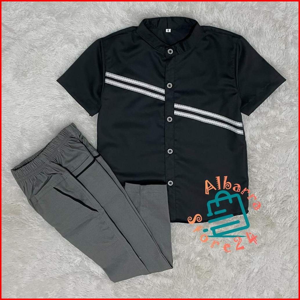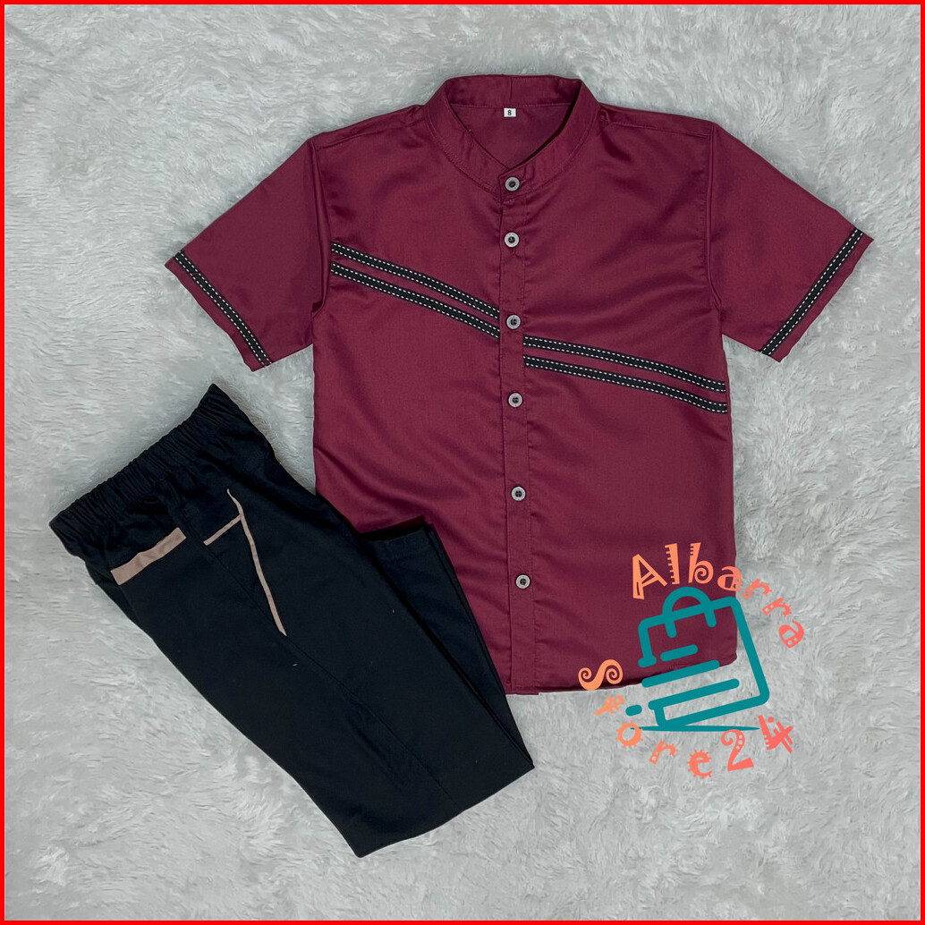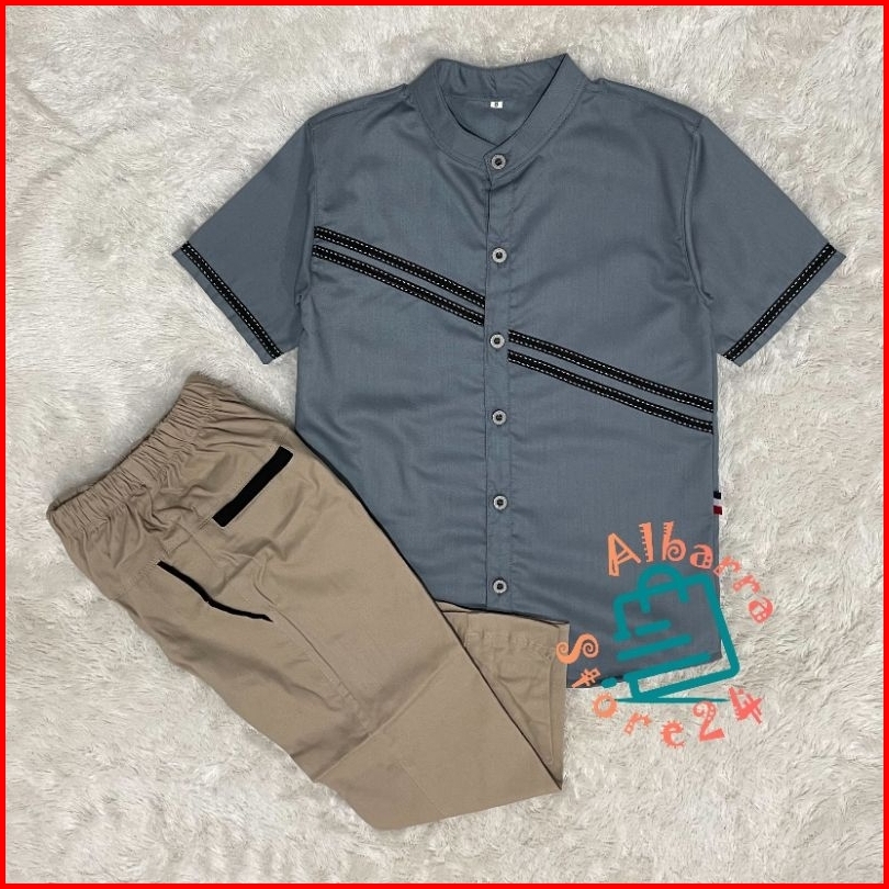 Setelan Anak Laki Laki Kemeja Lengan Pendek Chino Panjang Katun Toyobo Premium Terbaru