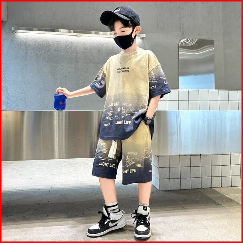Setelan Kaos Anak Satu Set Kaos Spirit Dan Celana Pendek Model Simple Casual Fashionable