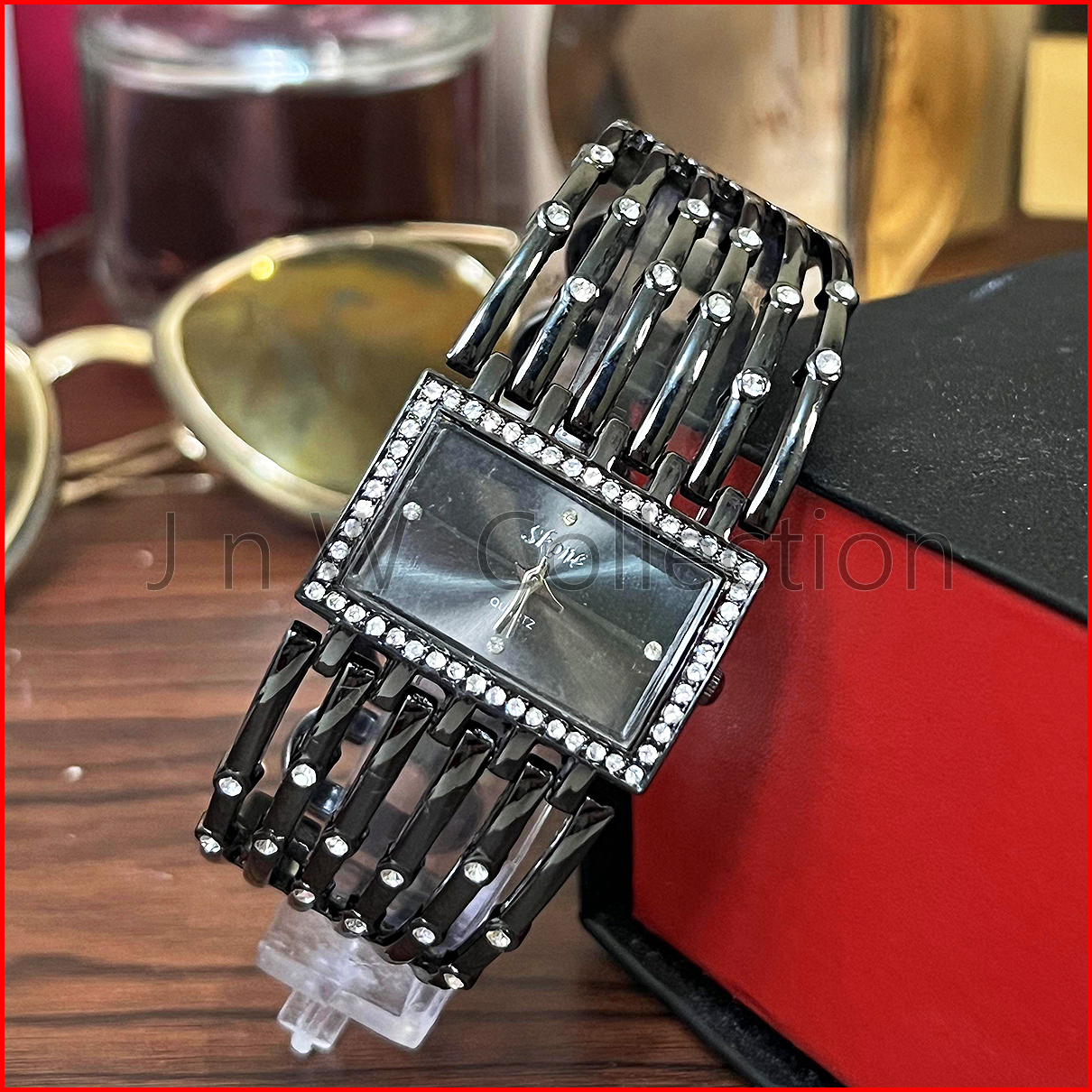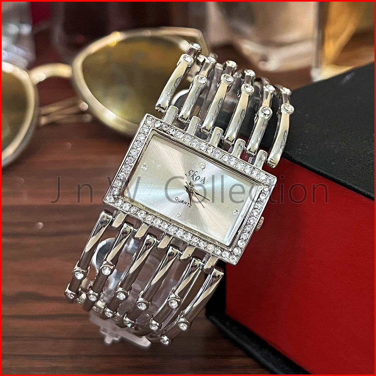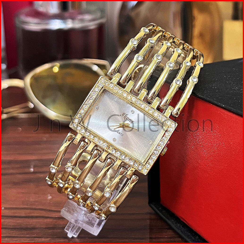 Jam Wanita Elegan Mewah Terbaru Import Korea Fashion Jam Tangan Cewek Tali Rantai Model Merica Kotak Keramik Stainless S