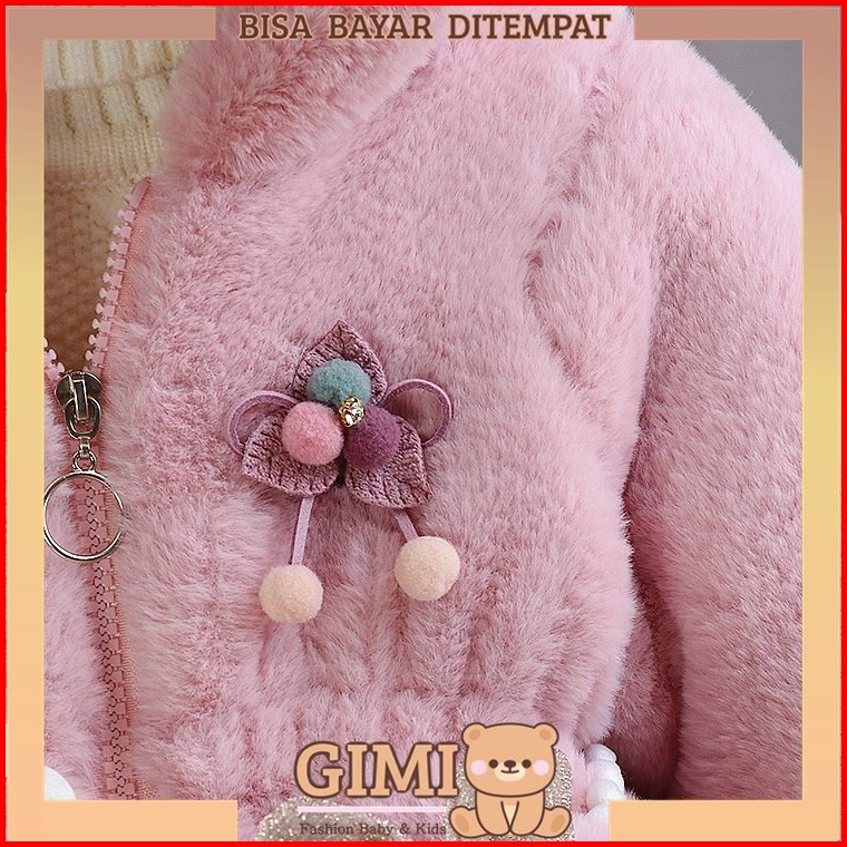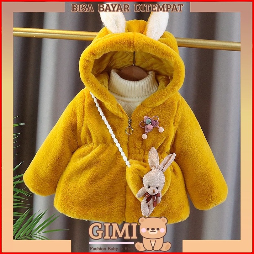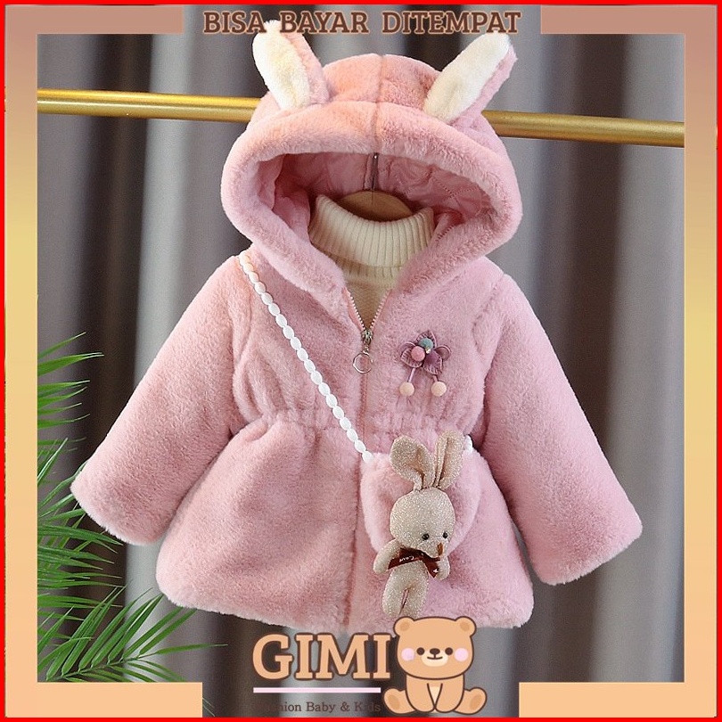Jaket Bulu Bayi Anak Perempuan 1 2 3 4 Tahun Import Korea Hangat Winter Free Tas Boneka Bayi 6 12 Bulan Perempuan