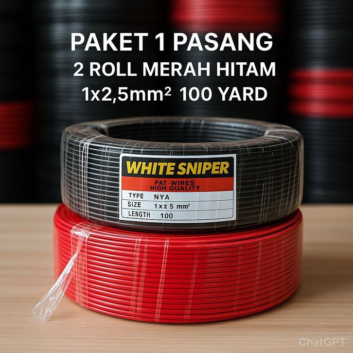 Kabel Listrik 1 Pasang 2 Roll Merah & Hitam - Kabel Listrik - Kabel Tembaga Kawat Tunggal - Kabel 1x2,5mm 100 Yard