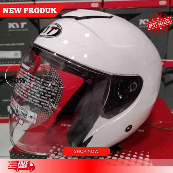 [Mall] HELM KYT KYOTO ORIGINAL R SOLID SNI WHITE HITAM GLOSSY PAKET GANTENG HALF FACE PINK BEST SELLER GRATIS ONGKIR