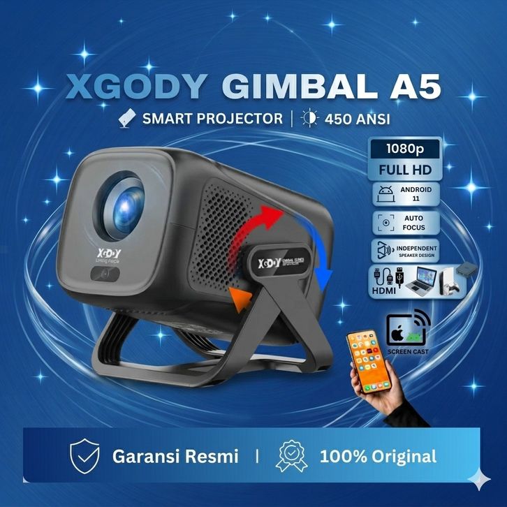 XGODY Gimbal A5 Smart Proyektor LCD - Android11 -FHD 1080P - MirrorLink - Auto Keystone - 450ANSI