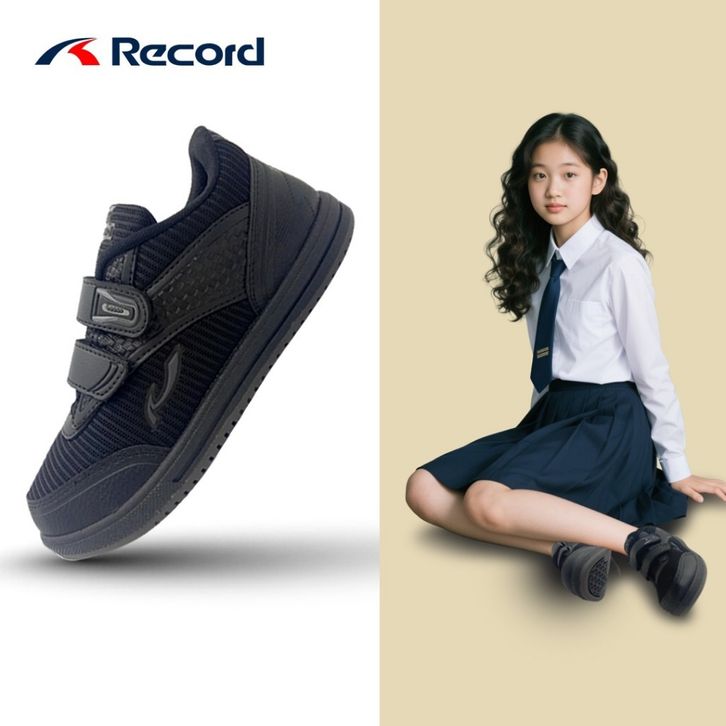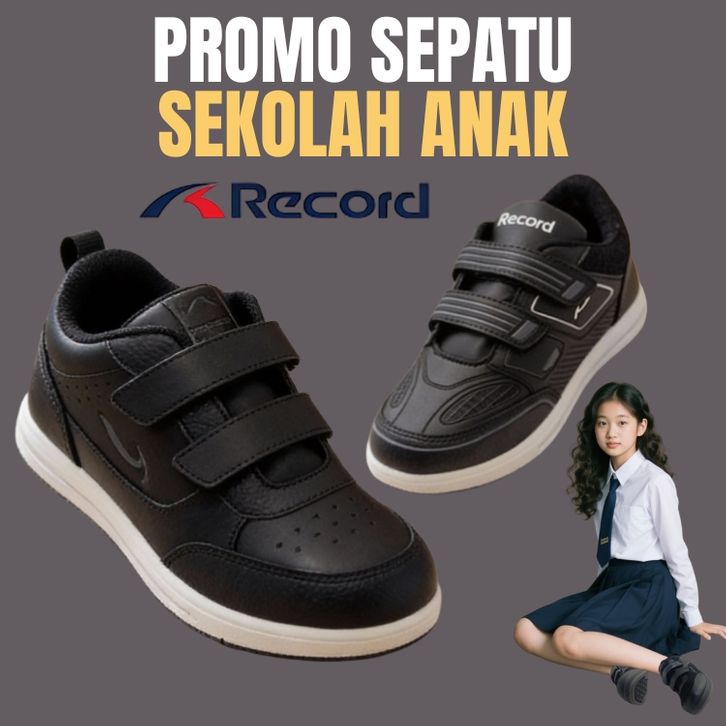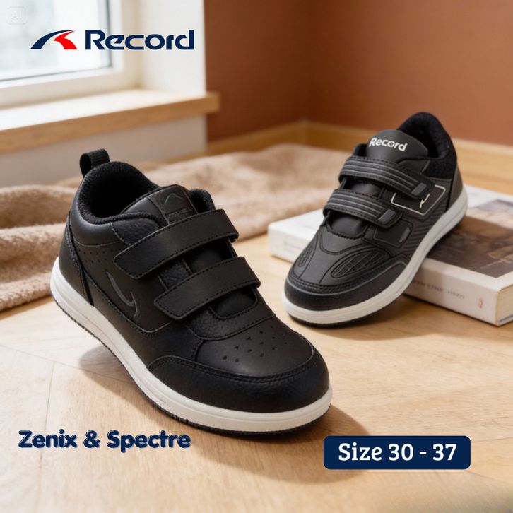 Sepatu Sekolah Record Zenix Sepatu Sekolah Anak TK SD SMP Cowok Cewek Full Hitam Sepatu Sekolah Anak Laki Laki