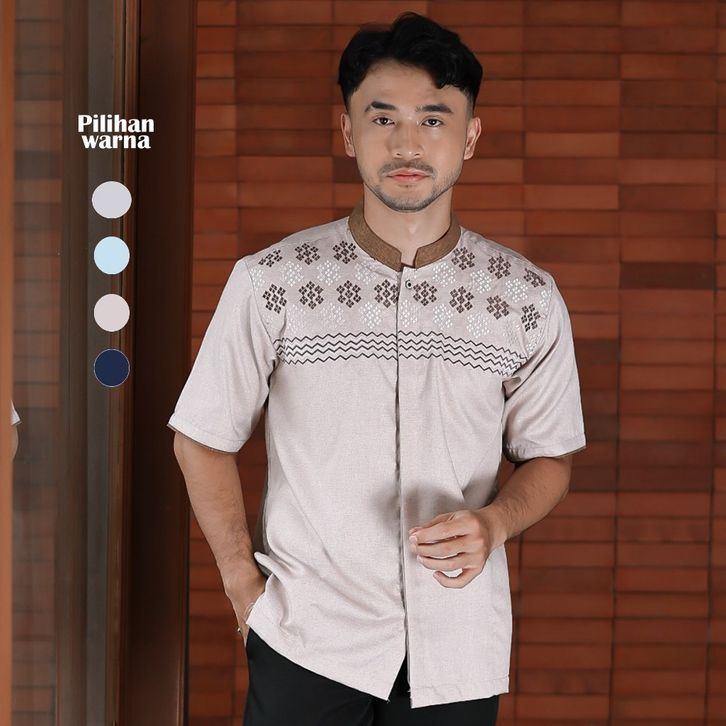 baju koko muslim bordir pria LEBARAN 2025 dewasa terbaru lengan pendek katun madinah warna TERBARU