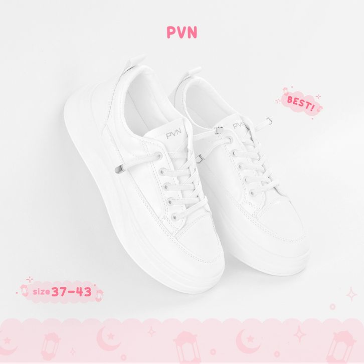 Soodam Sepatu Sneakers Kets Putih Hitam Cewek Sport Shoes Kasual 180 High Quality Kulit Sintetis Kualitas Premium
