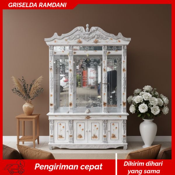lemari kaca ruang tamu lemari kaca hias Pajangan kaca 4 Pintu Kabinet Kaca Lemari Kaca