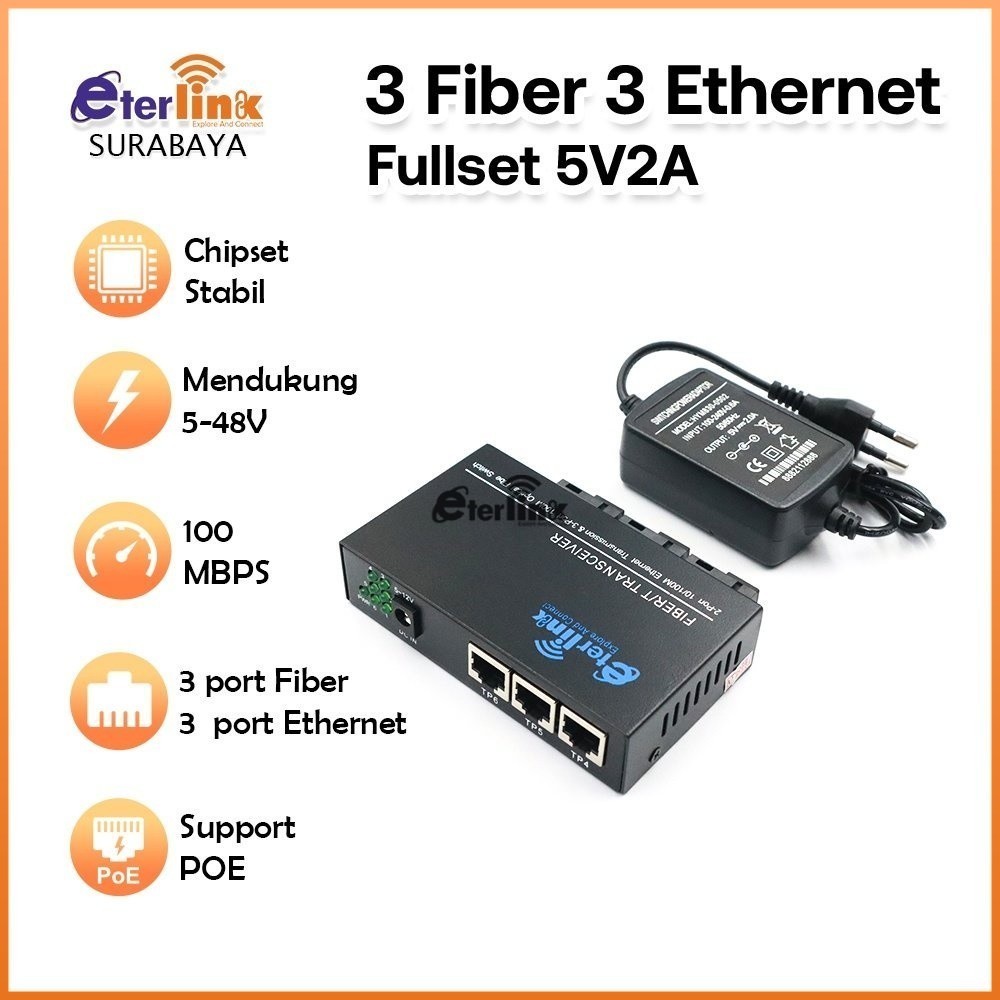 (GRATIS ONGKIR)【Support POE】10/100M 3F3E Switch Ethernet Media Fiber Optik Reverse POE Media Converter 5V-12V power
