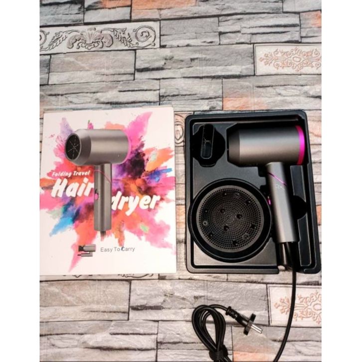 Pengering Rambut Hair Dryer Foldable Negative Ion Blower Black