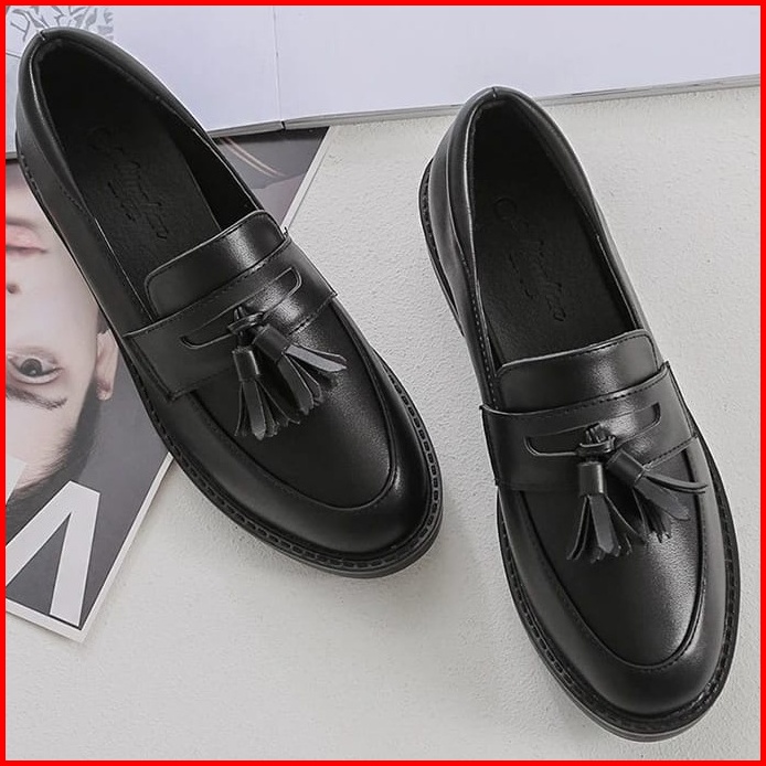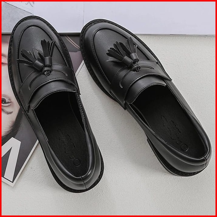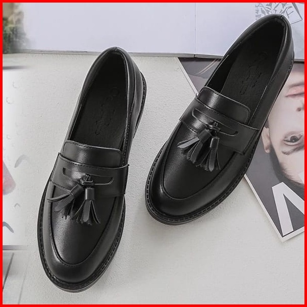 Fakhrieshop- Sepatu Loafers Style Rumbai Two Sepatu Wanita Black Dof Premium 903