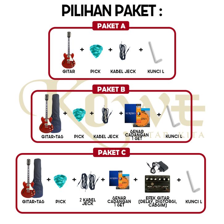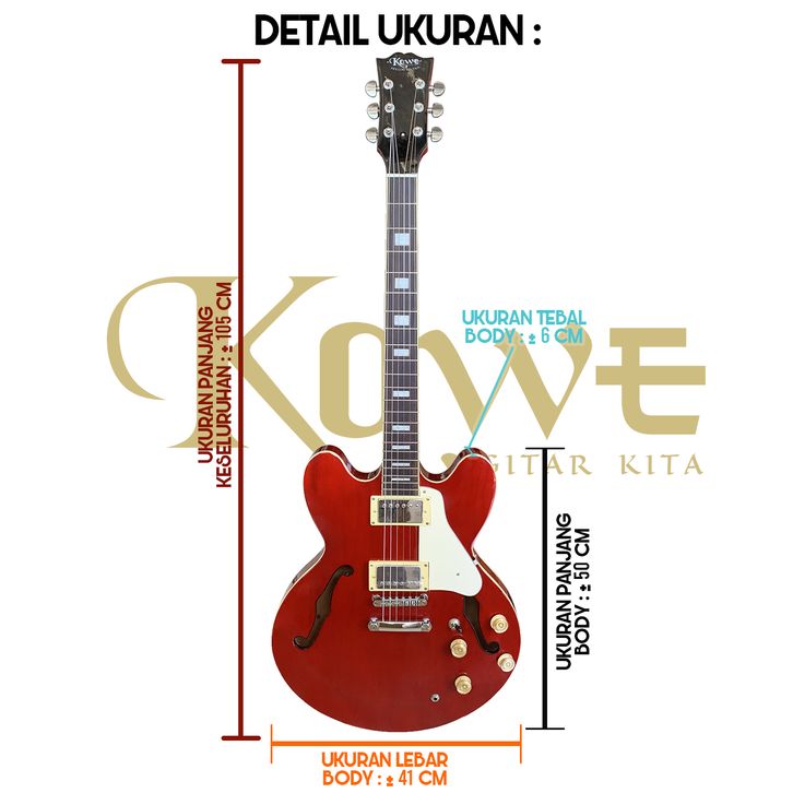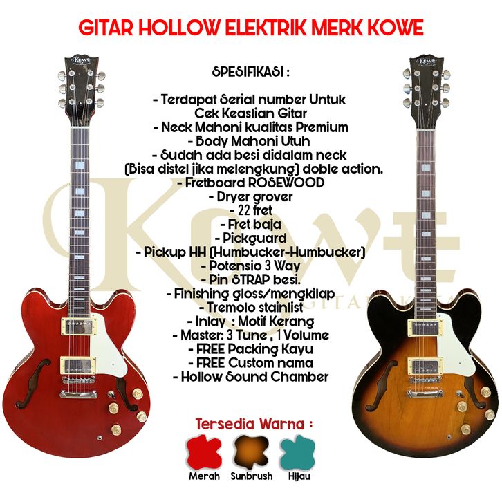 Gitar elektrik Hollow Vintage Merk Kowe Original FREE EFEK GITAR DDC01