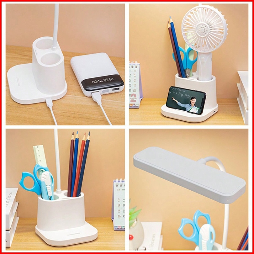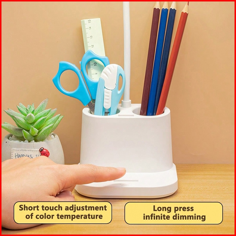 Rechargeble Led Lampu Meja Lampu Belajar Three Color Adjustable Lampu Malam Lampu With Kotak Penyimpanan Pensil