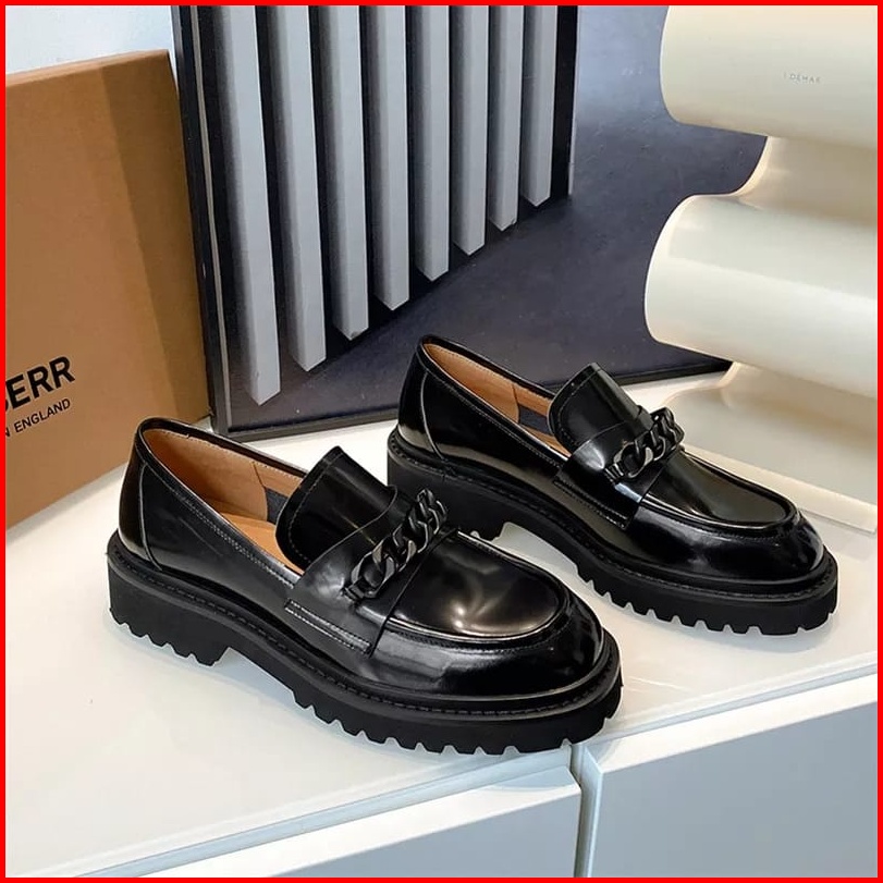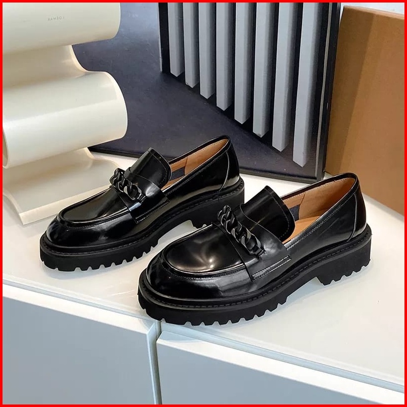 Sepatu Wanita Loafers Sepatu Docmart Rantai Black Glosy Premium Rbg 09