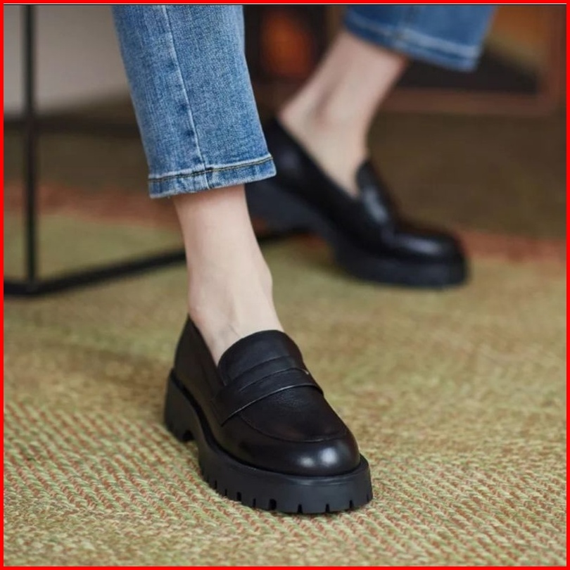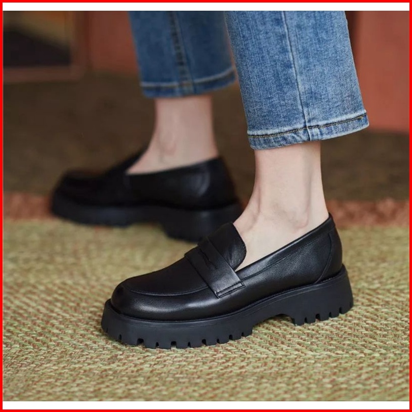 Sepatu Sekolah Hitam Remaja Perempuan Cewek Docmart Terbaru Fashion Korea Import Quality 1830 Sepatu Loafers Wanita Slip