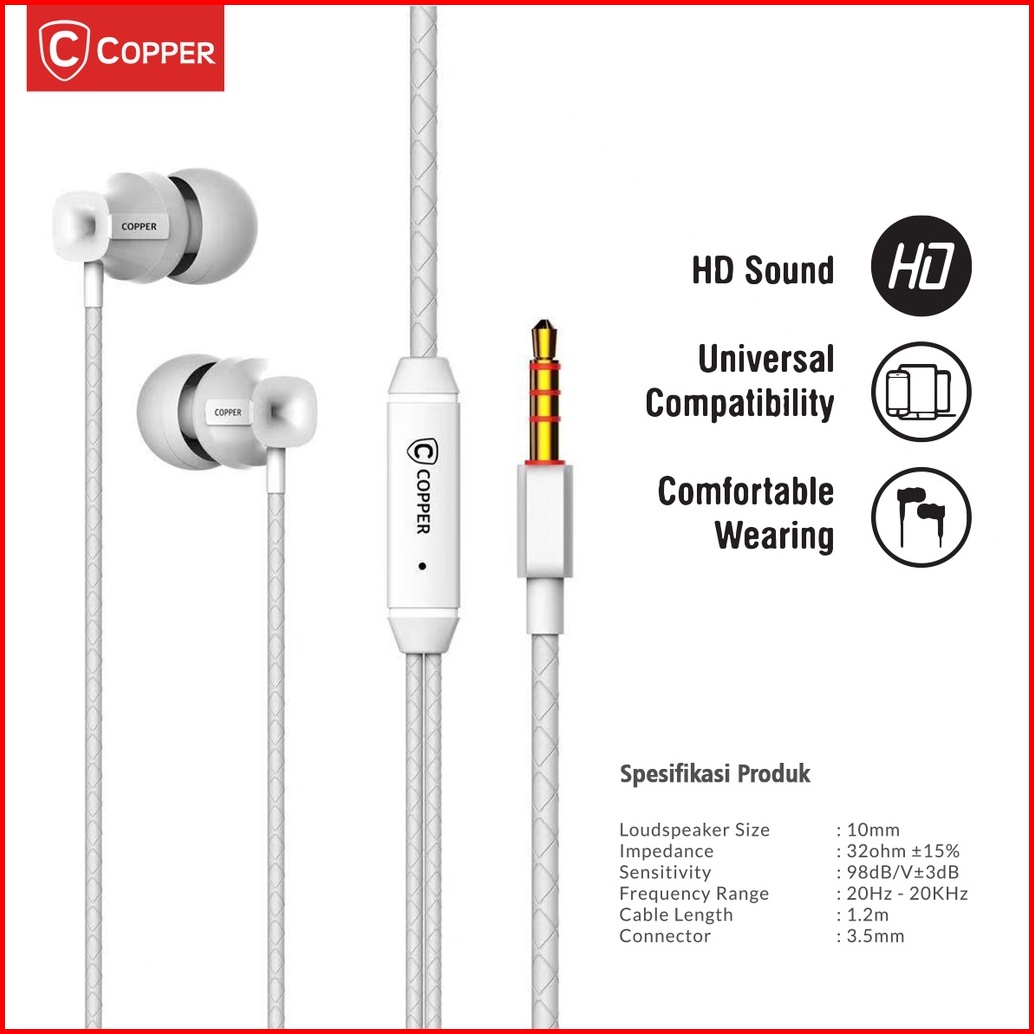 Copper Extra Bass Series Earphone Headset Handsfree Cp014