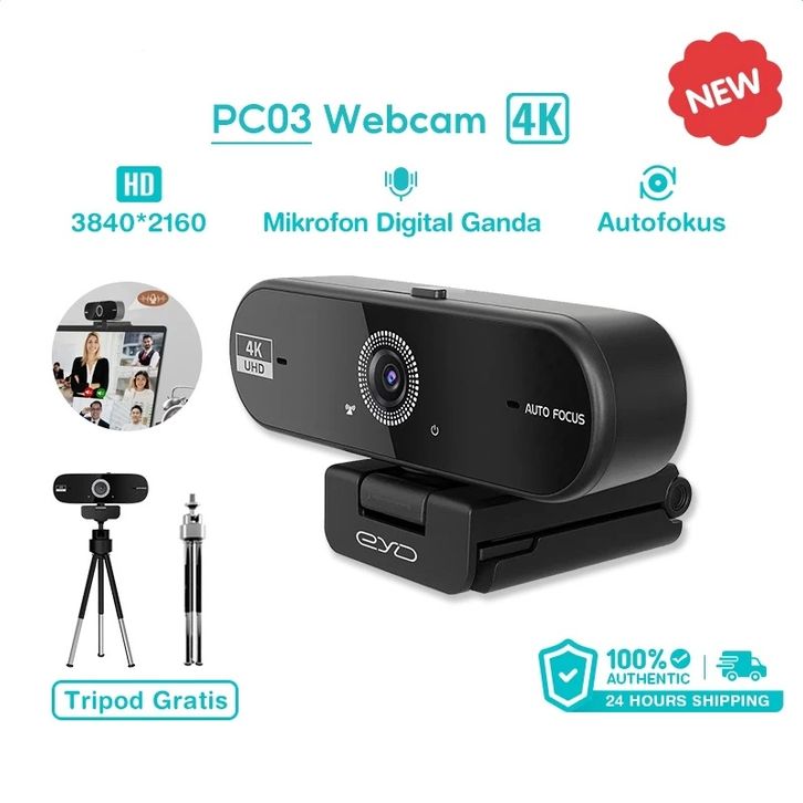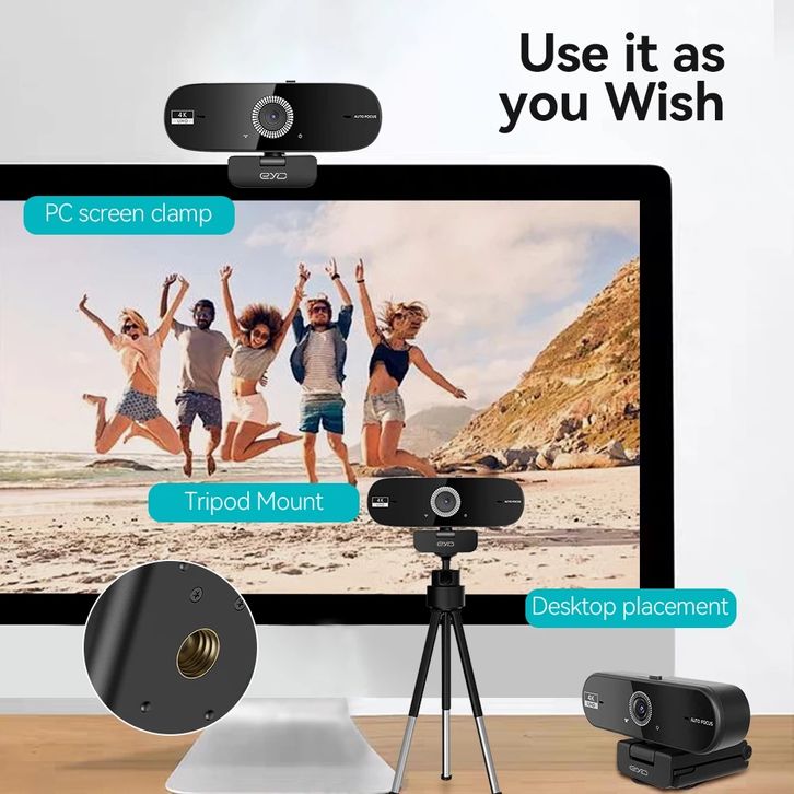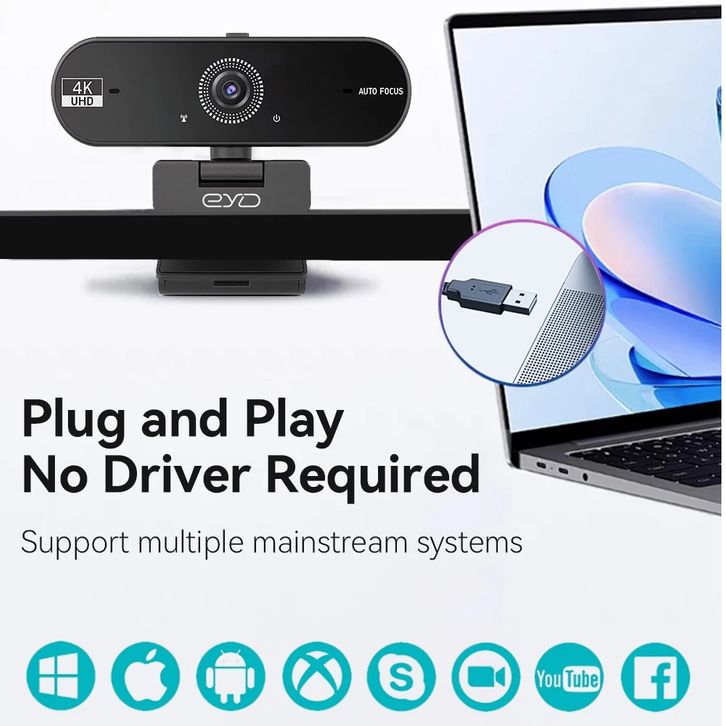 Webcam 4k Pc Laptop USB Camera With 360° Degree Rotation And Microphone Autofocus Live