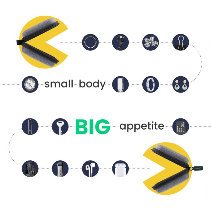 UGREEN TAS ORGANIZER STORAGE HANDBAG POUCH GADGET TRAVEL BAG CHARGER KABEL POWERBANK HEADSET HARDDISK OTG FLASHDISK DOMPET WATERPROOF - POUCH BLACK