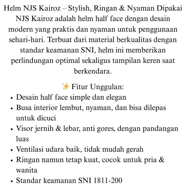 NJS KAIROZ HELM NJS KAIROZ ORIGINAL PAKET GANTENG HALF FACE FREE ONGKIR