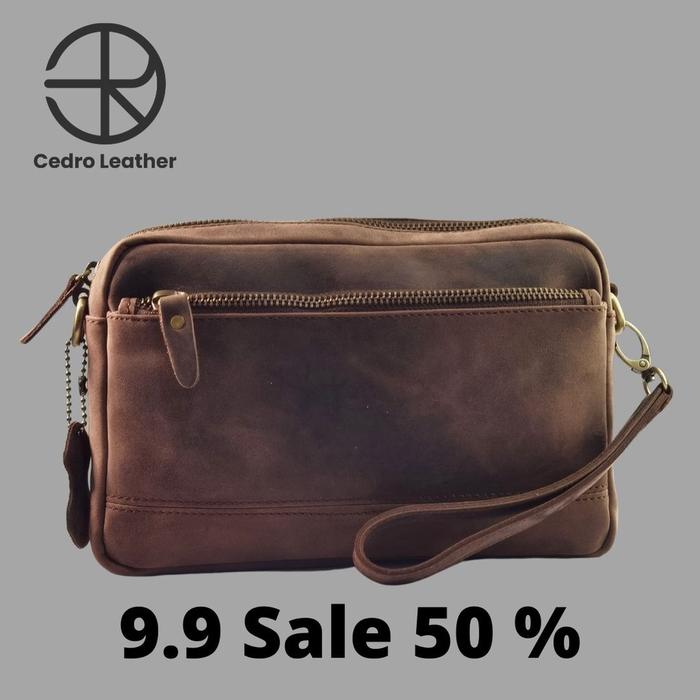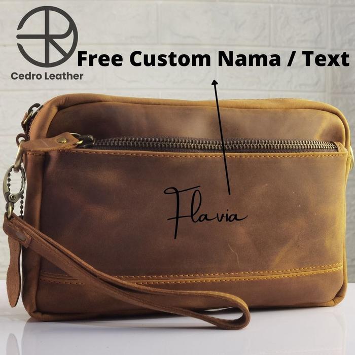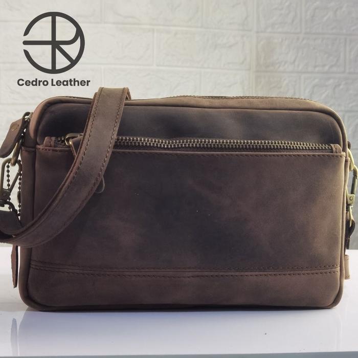TAS SELEMPANG KULIT ASLI 2 IN 1 HANDBAG FREE TAMBAH NAMA ATAU LOGO - COKLAT TUA