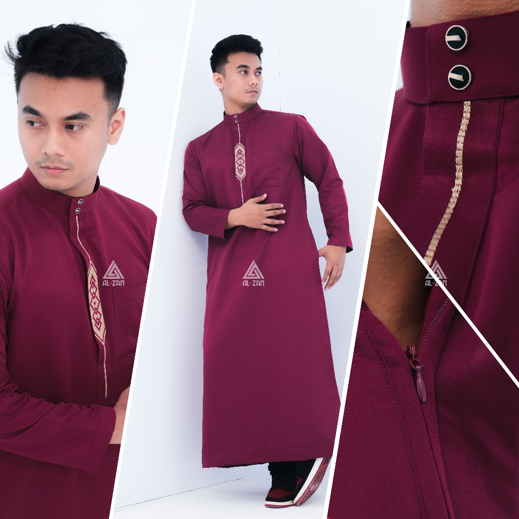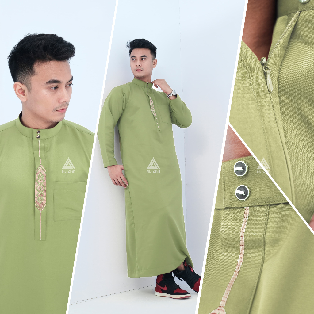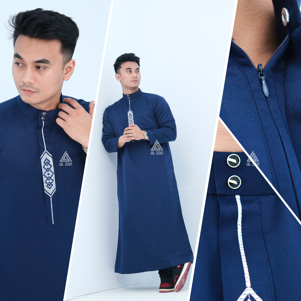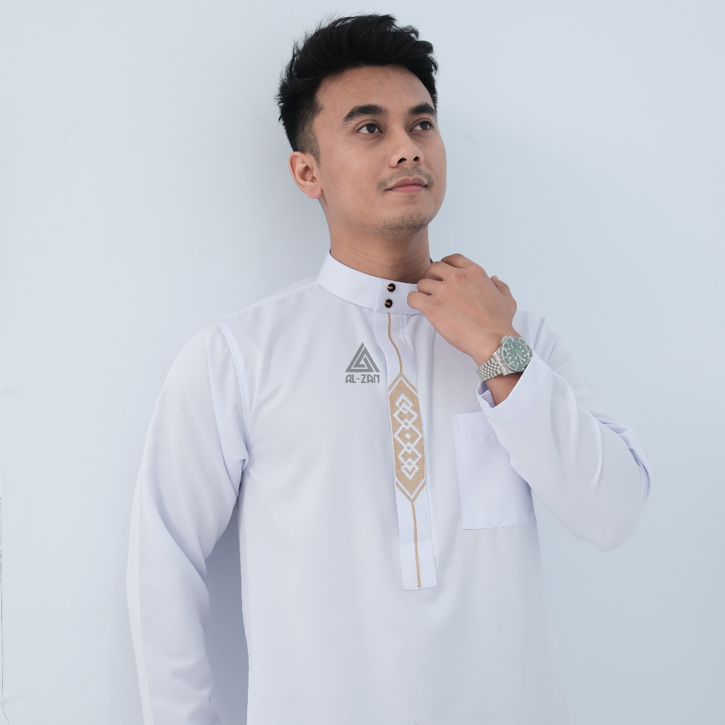 Gamis pria muslim lengan panjang bordir jubbah dewasa katun toyobo hitam putih busana muslim pria model terbaru