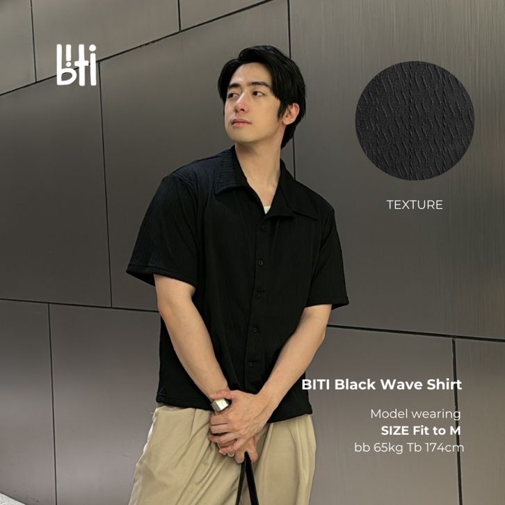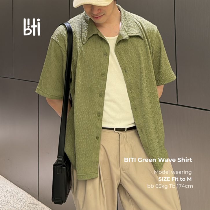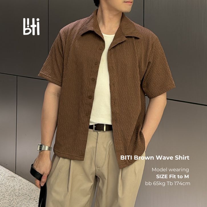 Kemeja Knit Shirt Rajut Wave Lengan Pendek Pria Casual