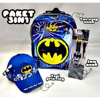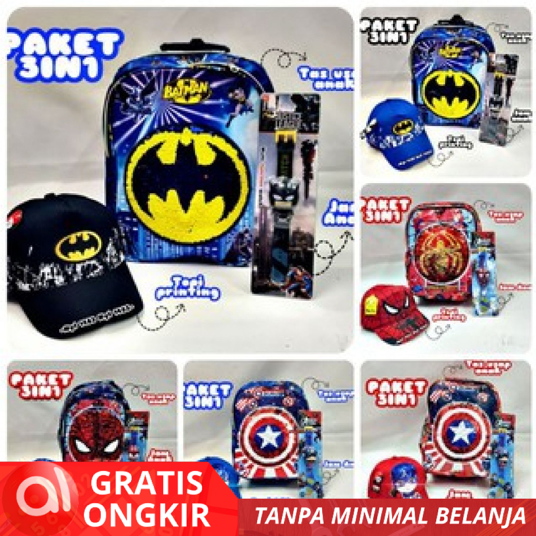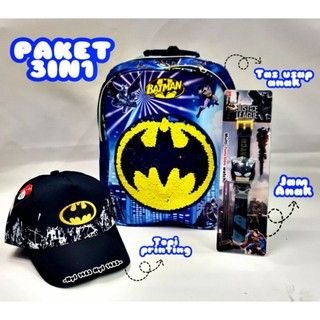 Tas ransel anak usap superhero gratis topi jam tangan - Tas ransel anak laki-laki
