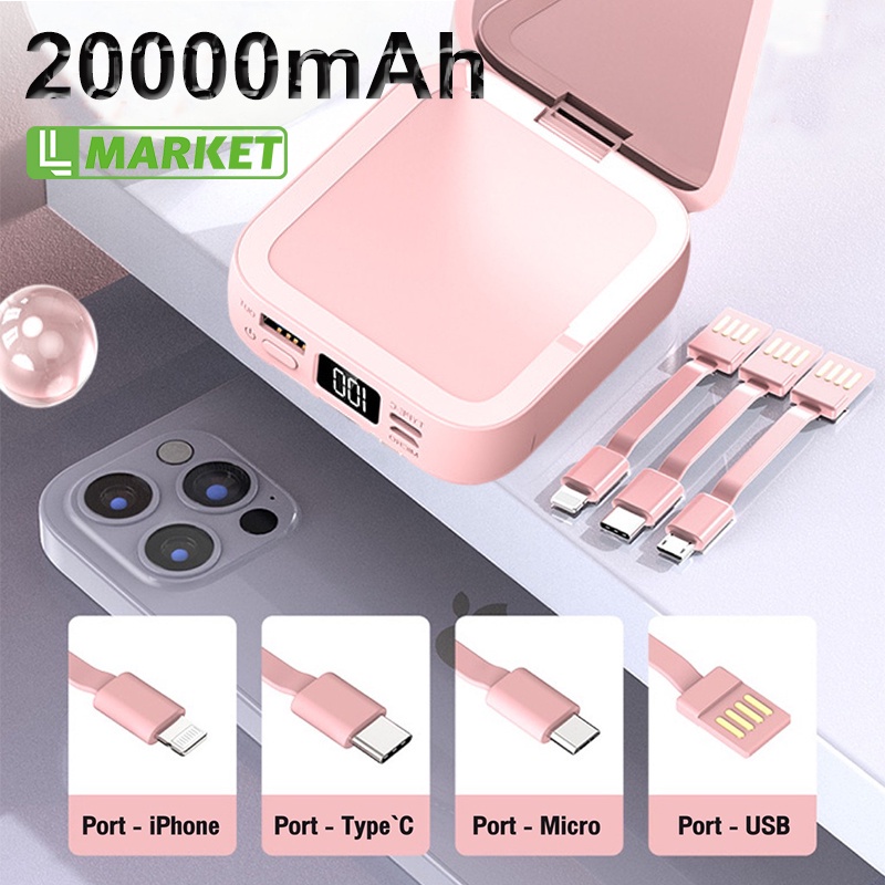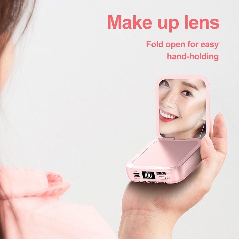 Powerbank Beauty Mirror 20000mAh Power Bank Pengisian Cepat dengan Cermin Lipat