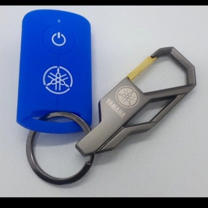 PAKET GANTUNGAN KUNCI DAN COVER REMOTE SILICONE YAMAHA FAZZIO 125 - Biru